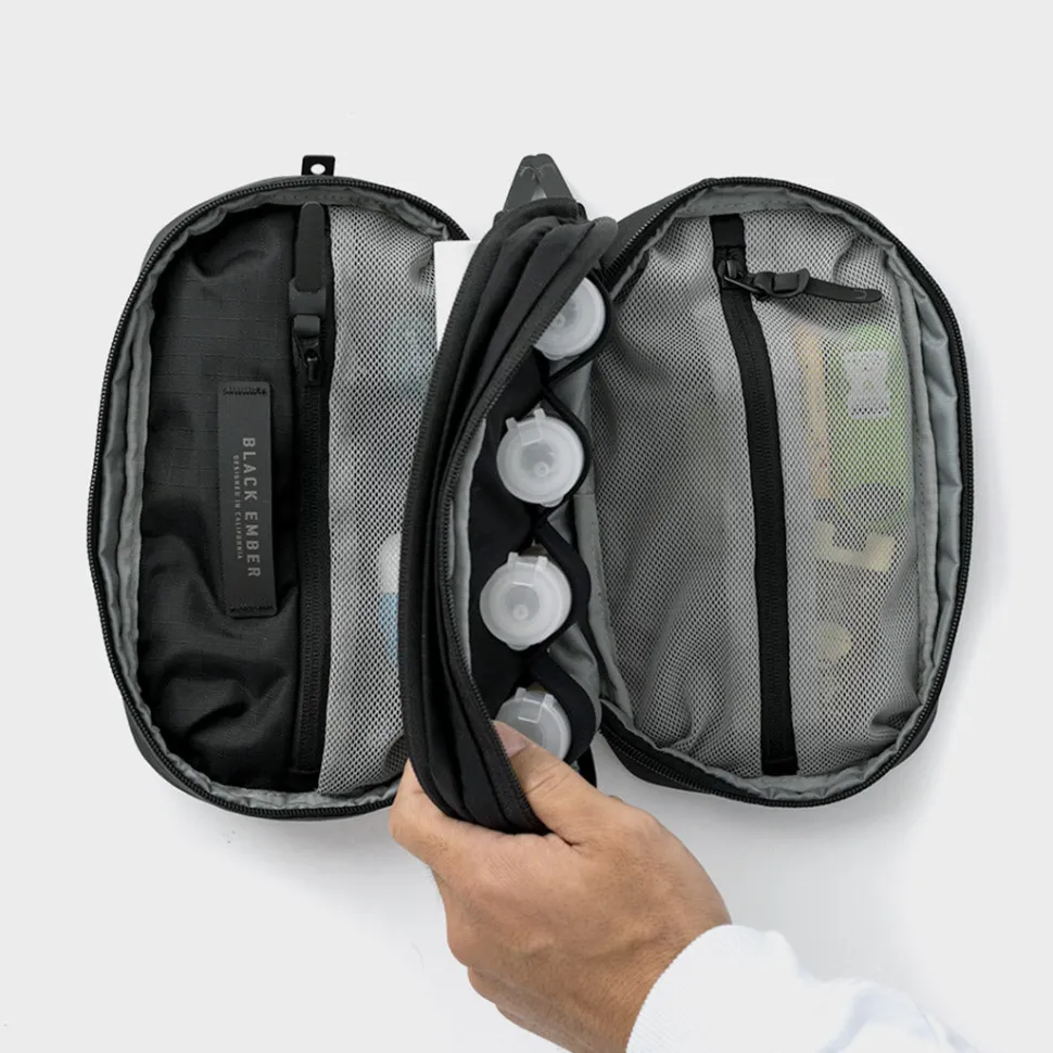 Introducing BLACKEMBER’s Dopp Kit, a convenient way to store items needed fortraveling.