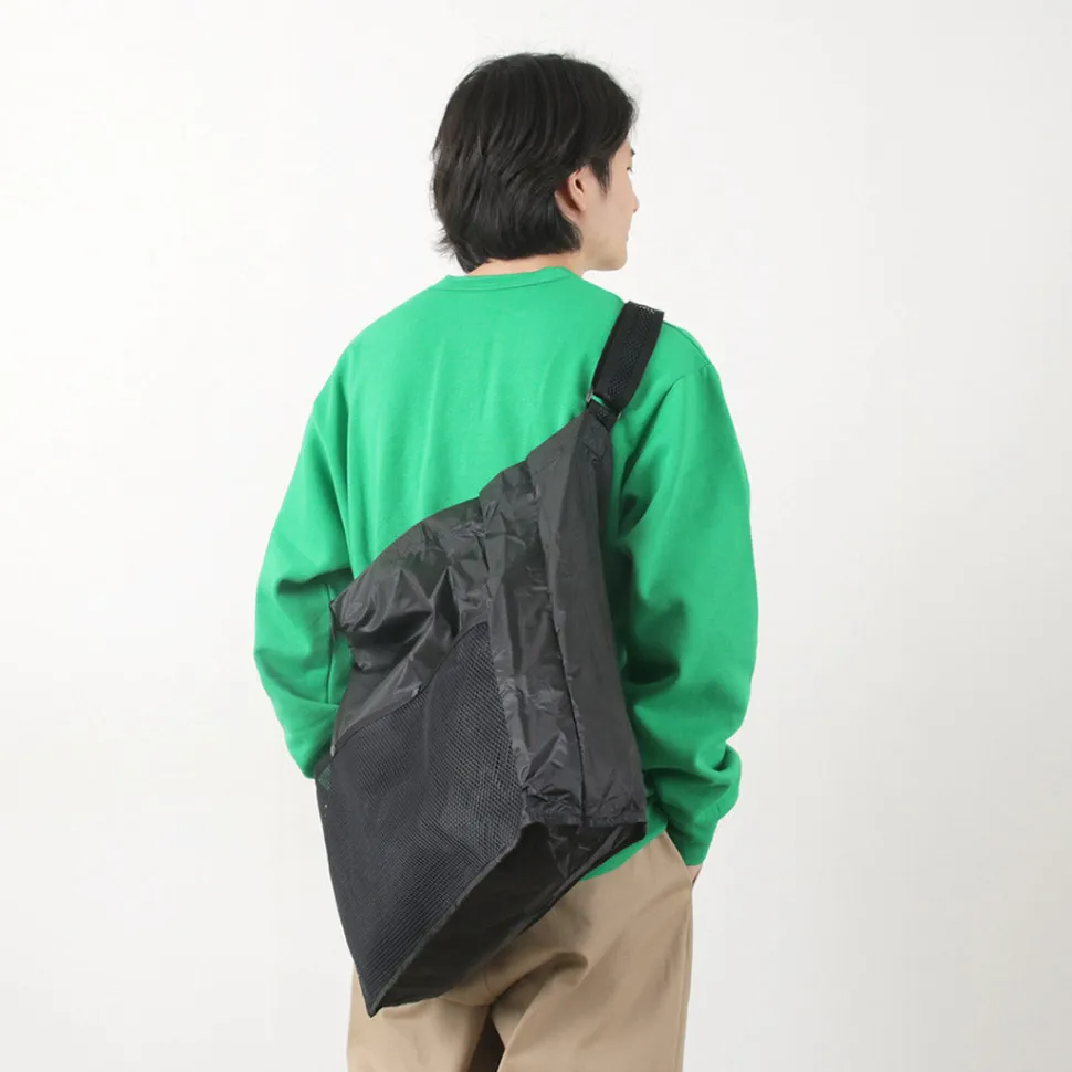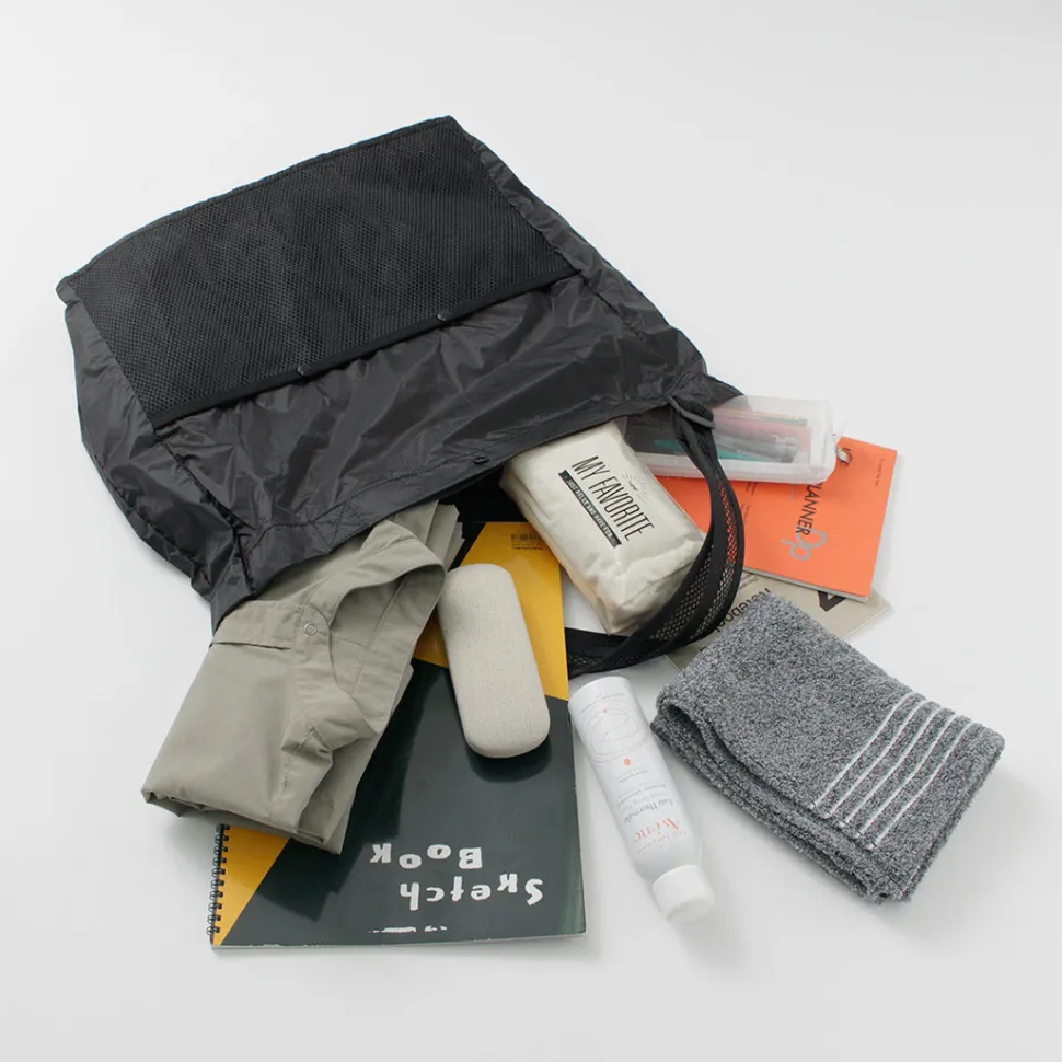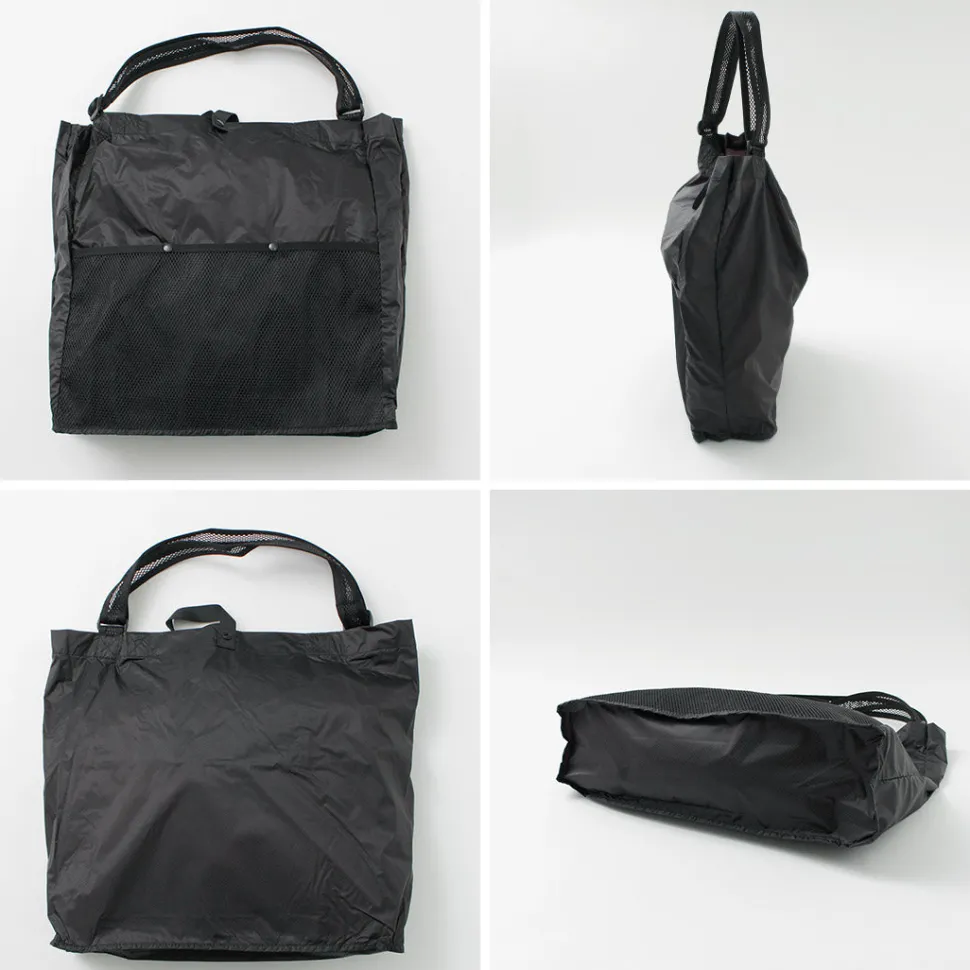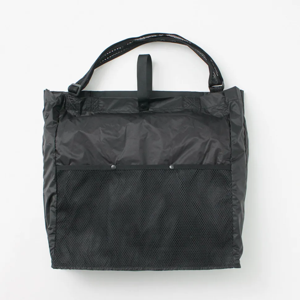 BURLAP OUTFITTER introduces a shoulder tote bag composed of lightweight, water-repellent Cordura sil nylon and mesh material. This item focuses on the fact that it is lightweight and foldable anyway. Despite being a minimalist item, it has a large capacity of approximately 31 liters and can be used not only as a bag for holidays, but also as a sub-bag if you keep it in your regular main bag.