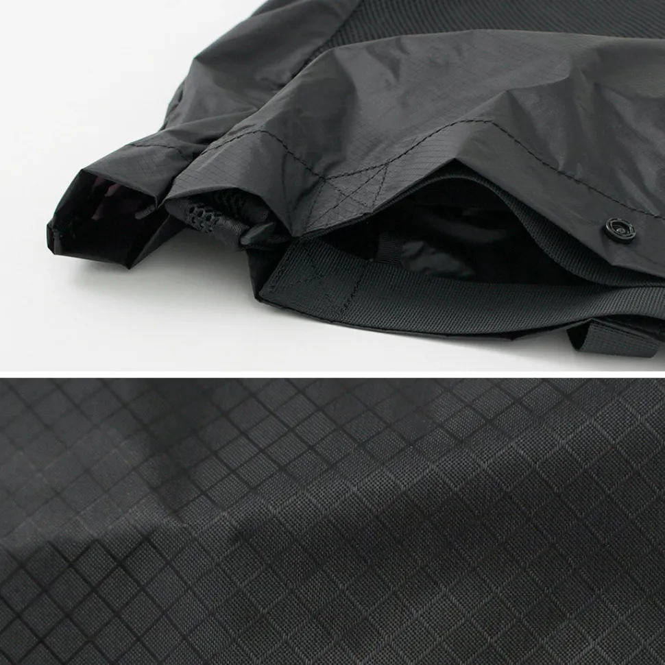 Lightweight and water-repellent Cordura sil nylon and mesh materials are used for the fabric. The thin nylon with silicone coating maintains toughness while providing a supple feel. It can also be folded and stored compactly.