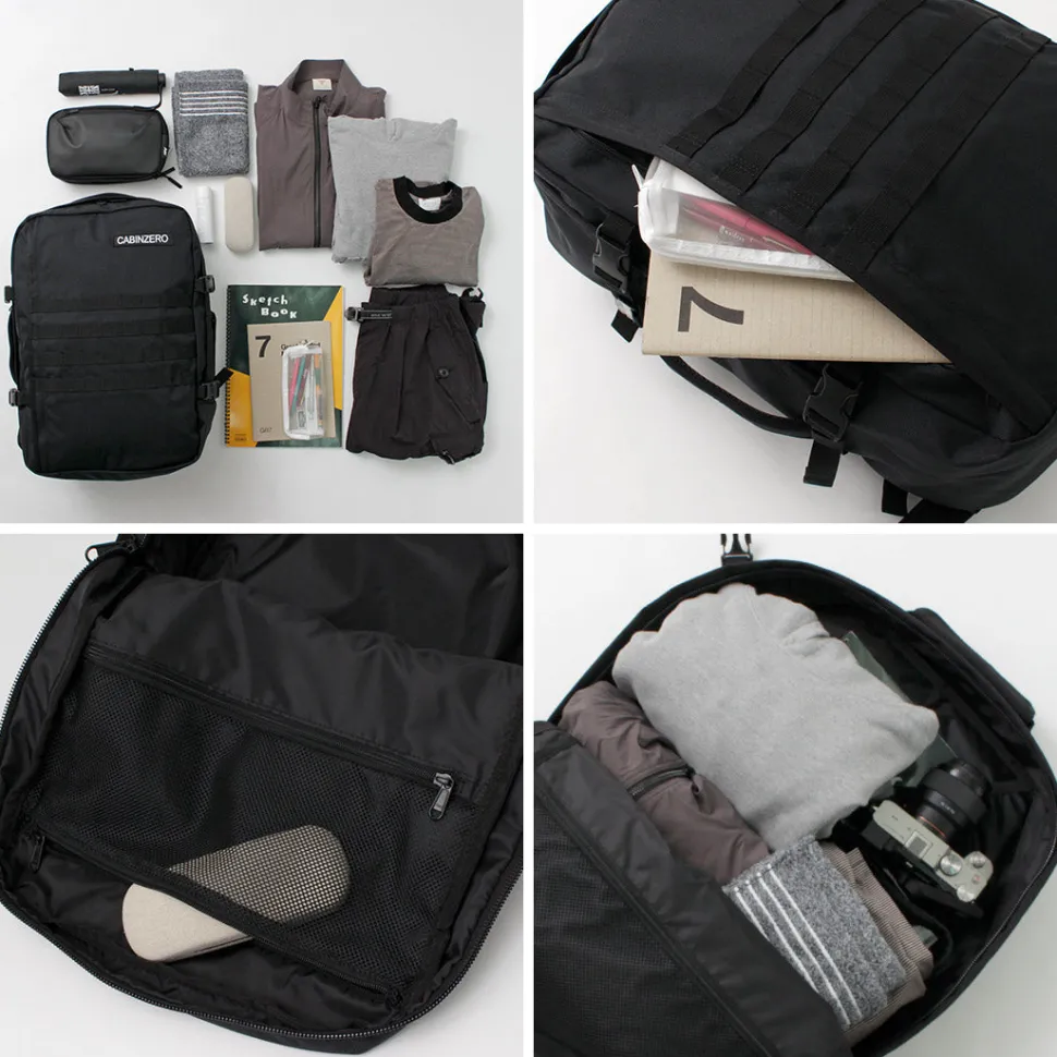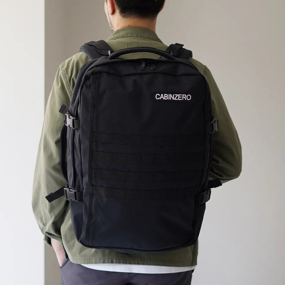 Introducing the 44L backpack from the “MILITARY” series, the toughest and most rugged of the CABIN ZERO lineup. The unique military “MOLLE system” on the front is an eye-catching design.