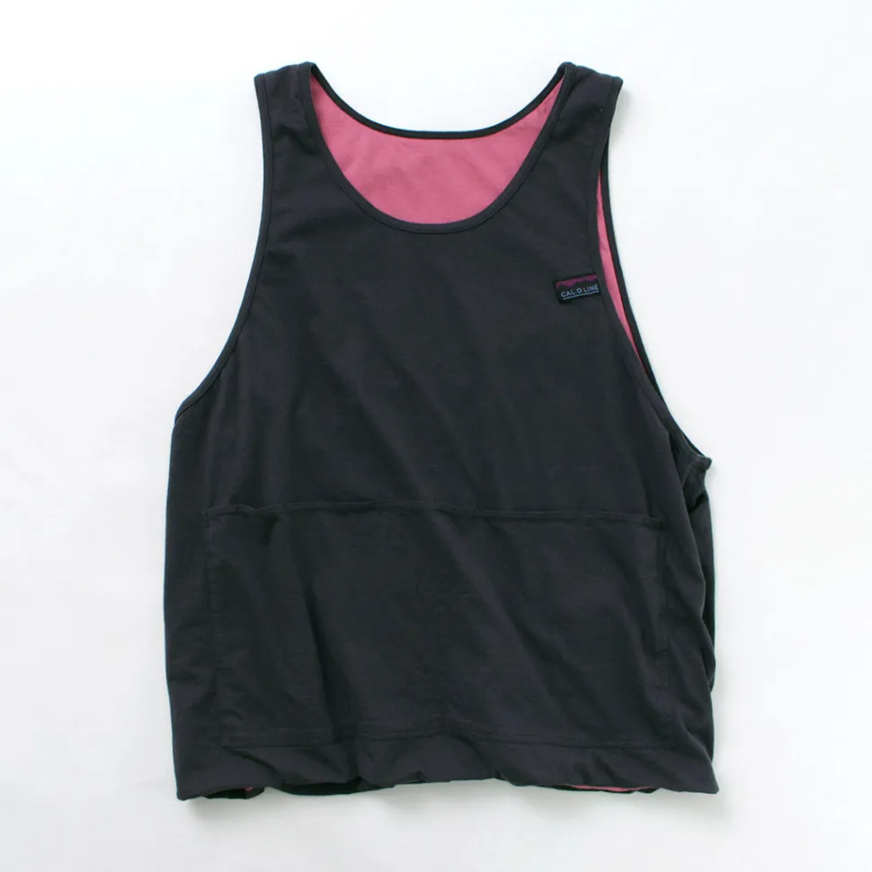 Tank top that can be worn reversibly. The large tool pocket on the front provides a design accent and good storage capacity.