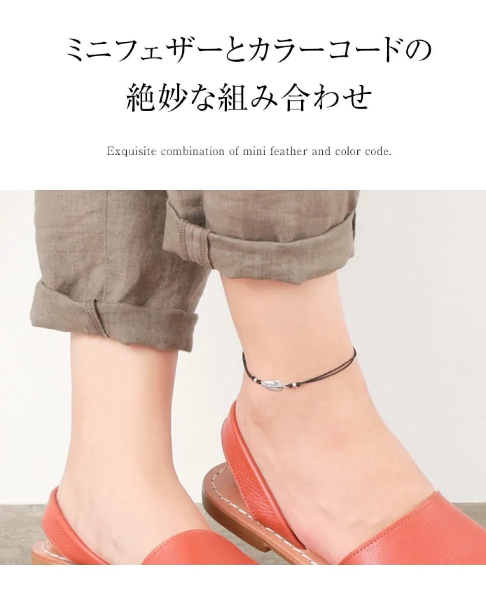 This notching cord anklet features an exquisite combination of mini feathers and colored cords, a rich color variation, and a feather charm. The combination of the beautiful shine of 925 silver and the colorful notched cord will enhance your summer style. It is water-resistant and dries quickly after getting wet, so you can leave it on all day long, making it a perfect item for summer leisure. The brilliance of 925 silver and the soft texture of plating. 925 silver is a type of silver. The meaning of the number 925 refers to the silver content (purity) of the alloy, which contains 92.5% silver. Water-resistant notched cordsNotched cords are made of polyester yarn that has a silky sheen to it. Even a single thin cord is very strong and is used as a material for accessories.