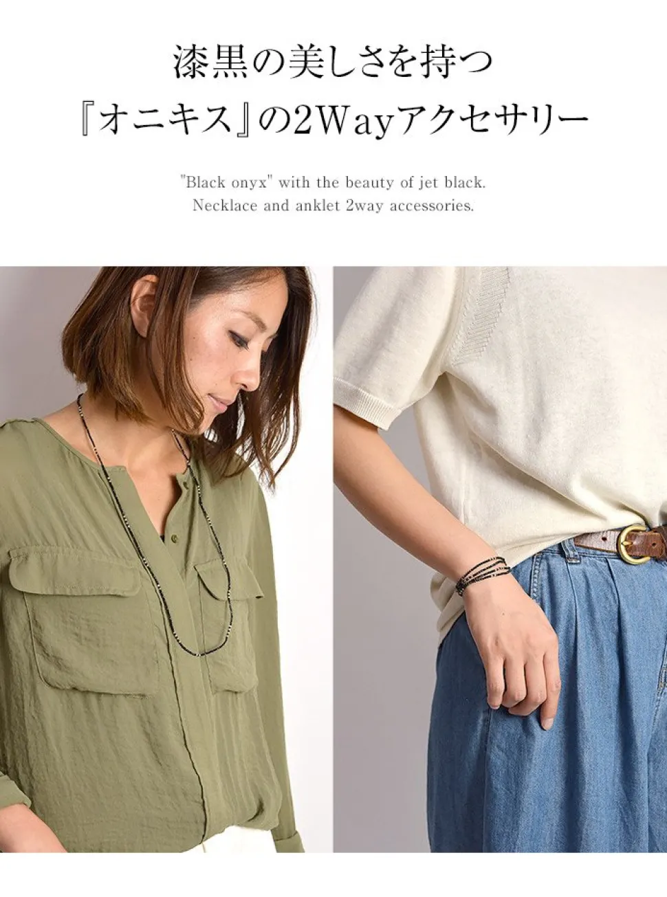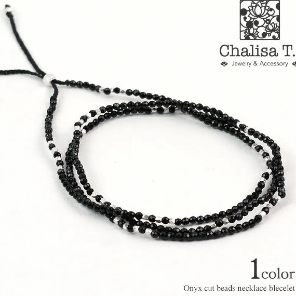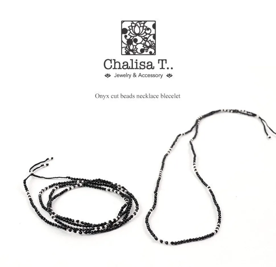 This is a two-way accessory made of black onyx, which has a jet-black beauty. It is made of 32-sided lapis lazuli 2mm beads, which are hard to find in the market.