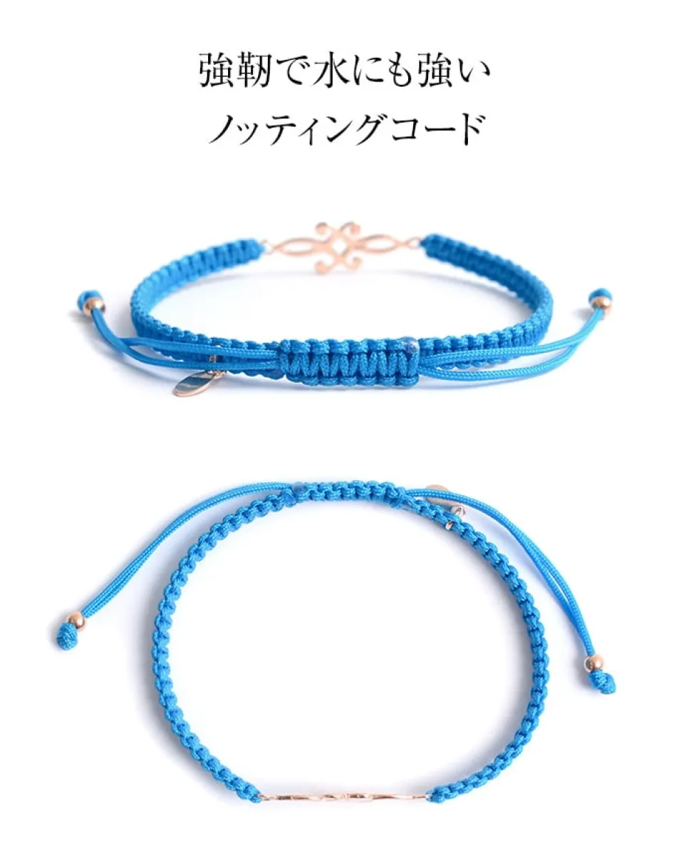 The symmetrical flower pattern anklet features beautiful curves with a flower motif. The design is not too overbearing and will casually decorate your feet. A wide variety of colors are available, from chic tones to pop ones. Use them according to the occasion and enjoy them as accents to your coordination. The meaning of the number 925 is the purity of the silver content, which is an alloy containing 92.5% silver. For gold and pink gold, 925 silver is plated to prevent tarnishing due to sulfurization. It also increases the strength and resistance to scratches, and gives it a brightness and softness that brings out the personality of the wearer. Strong and water-resistant notching cordThis cord is made of polyester yarn with a silky luster. Even a single thin cord is very strong and flexible.