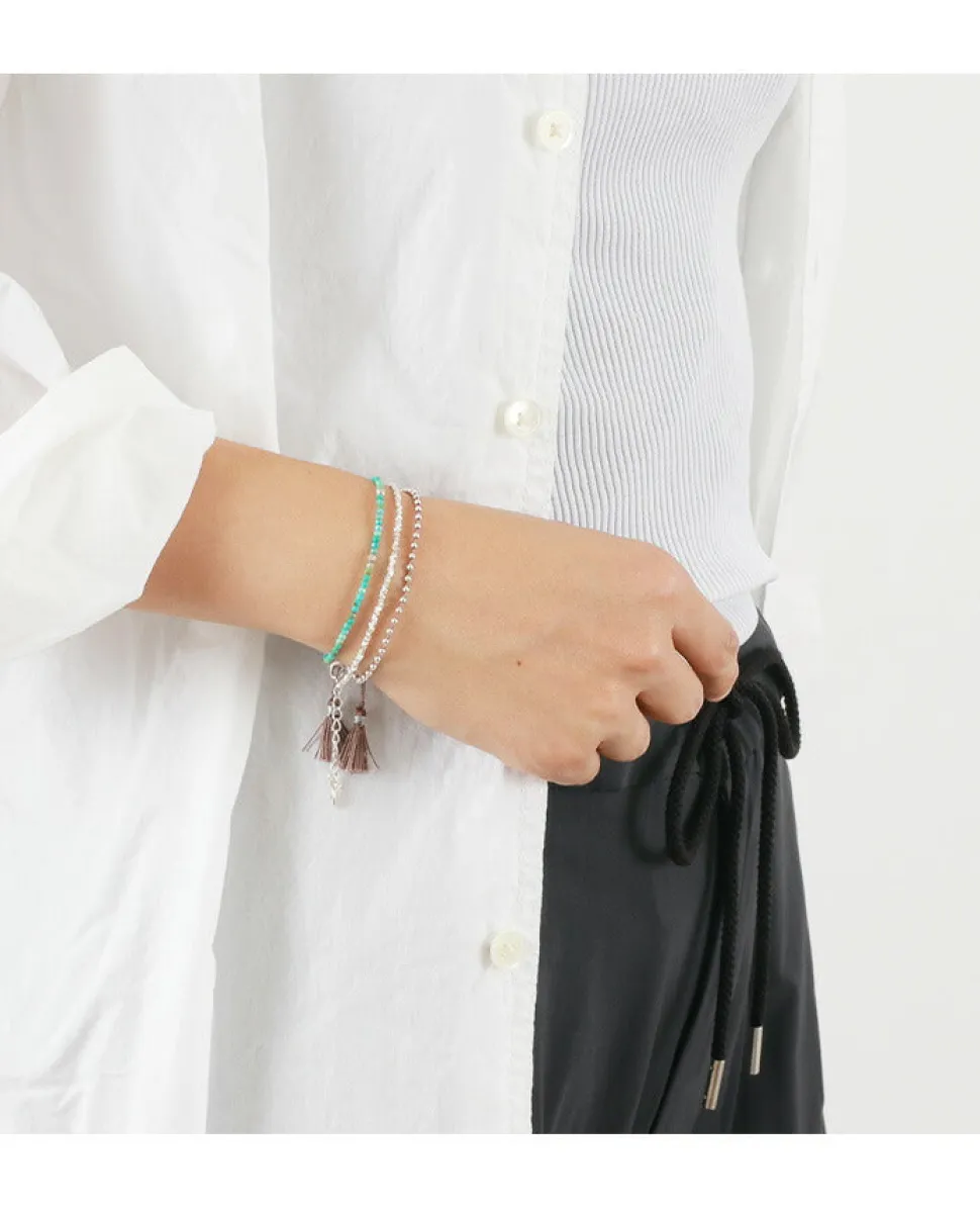 The bracelet is made of turquoise beads cut into small pieces and Karen silver, which has an attractive shine. The bracelet is small in size, but has a strong presence and will add a gorgeous touch to your hand. Vibrant Turquoise BeadsTurquoise, a natural stone, is made into multi-cut beads of approximately 1.5 to 2 mm. The deep green, bright blue and other colors that only natural stones can draw you in will look great on your bare skin. Each piece of Karen silver is finely cut and has an uneven size and shape. It has a matte finish, but with a unique luster that gives it an attractive shine depending on how the light hits it. The clasp is made of 925 silver and has a 3cm adjuster so you can adjust the size.