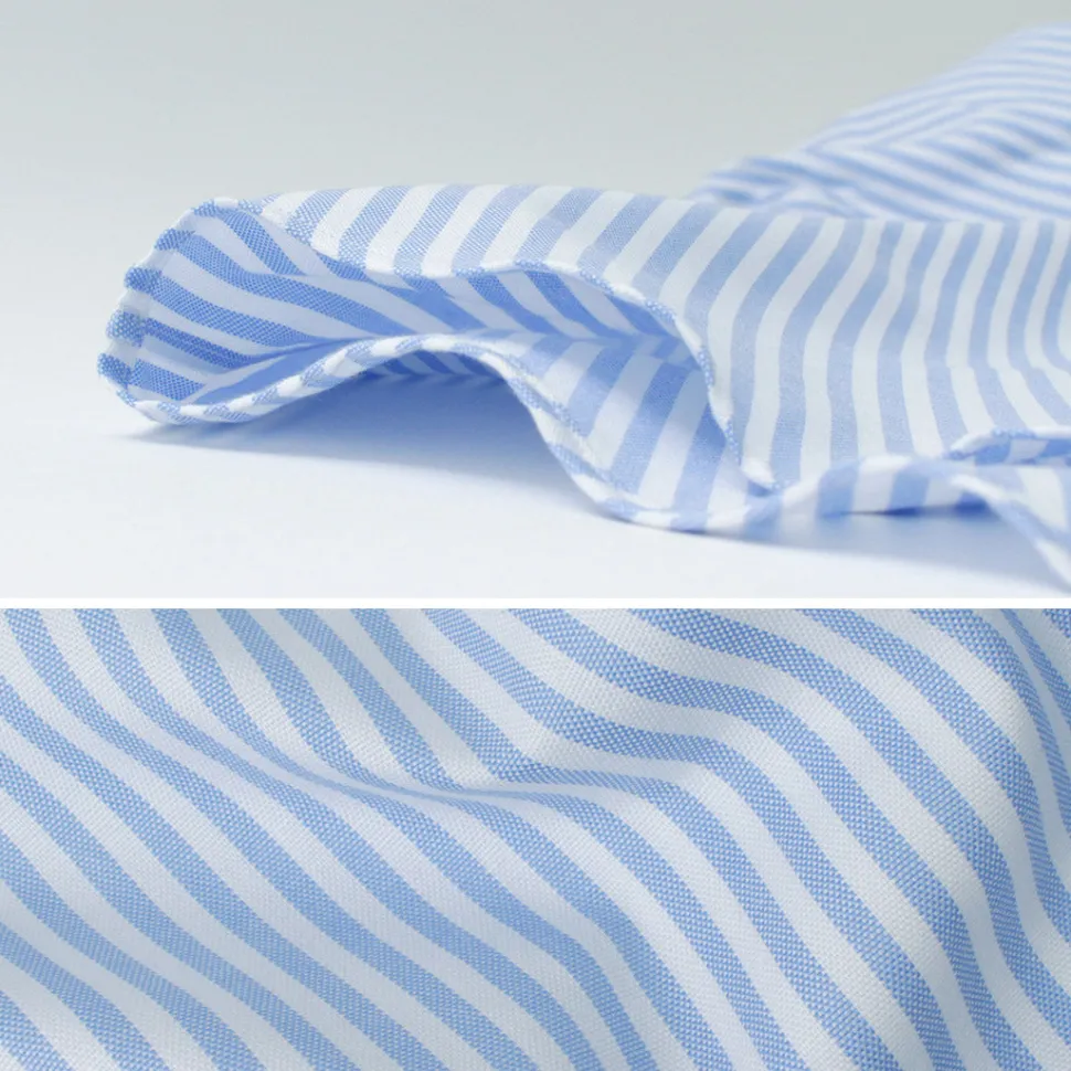 The fabric is crafted from pin oxford. This type of fabric is a finer, smoother version of traditional Oxford cloth, giving it a more refined and formal appearance.