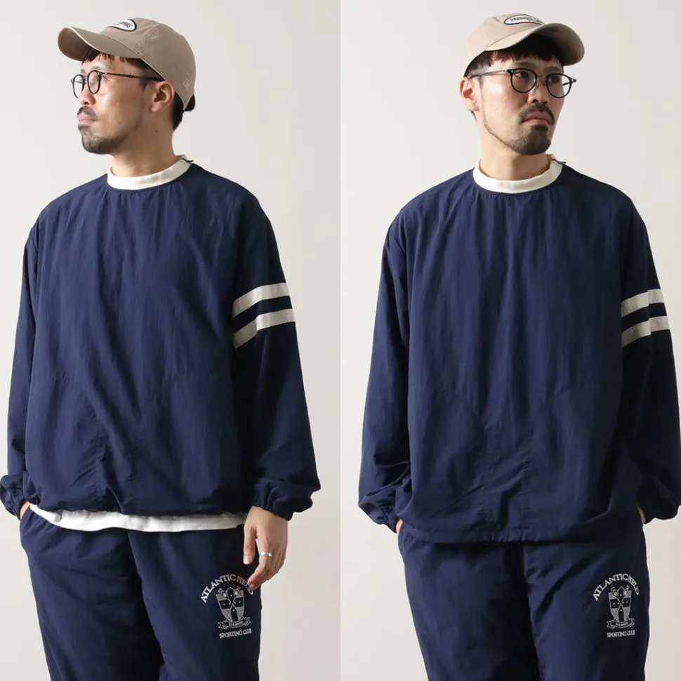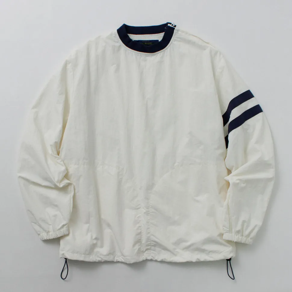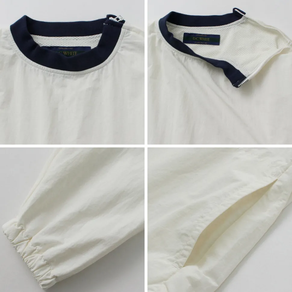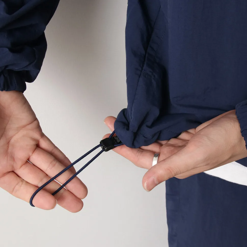 This item was created with the image of a product sold at the Ivy League university co-op store in the 1960s. The natural creased nylon cloth, the ribbed neck and the line design on the sleeves give this item a nostalgic feel.