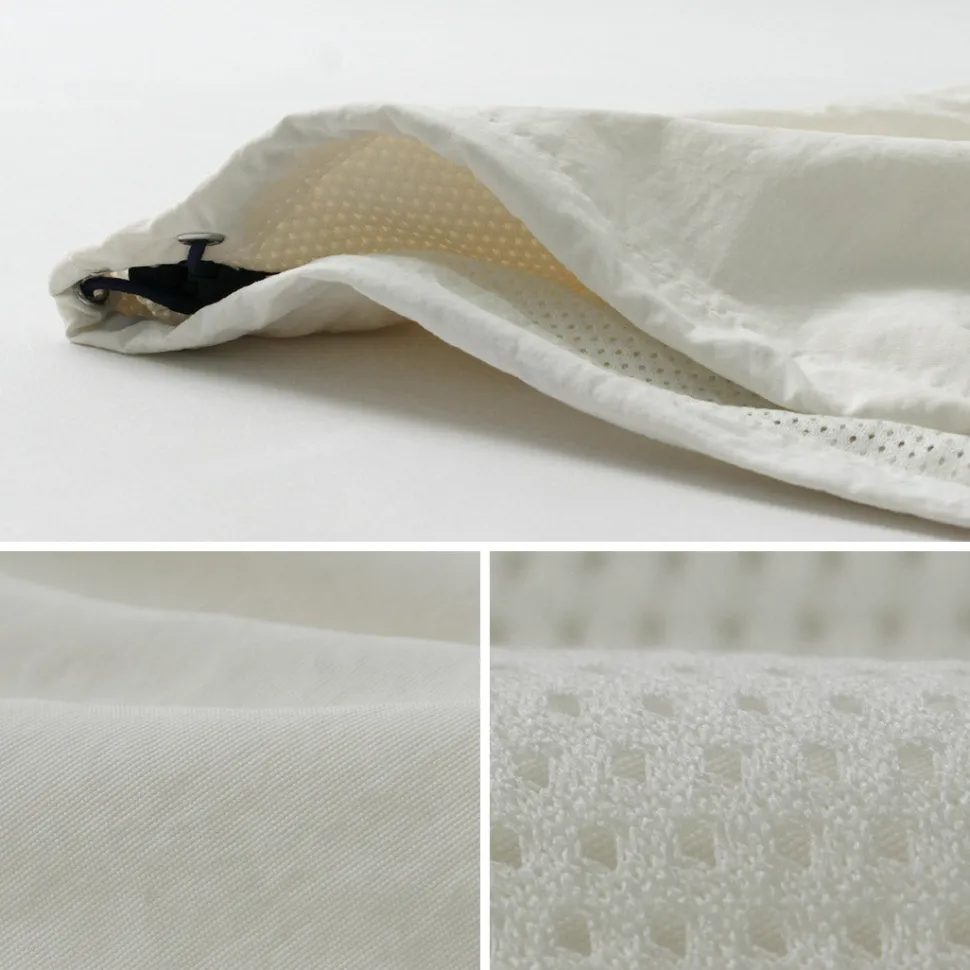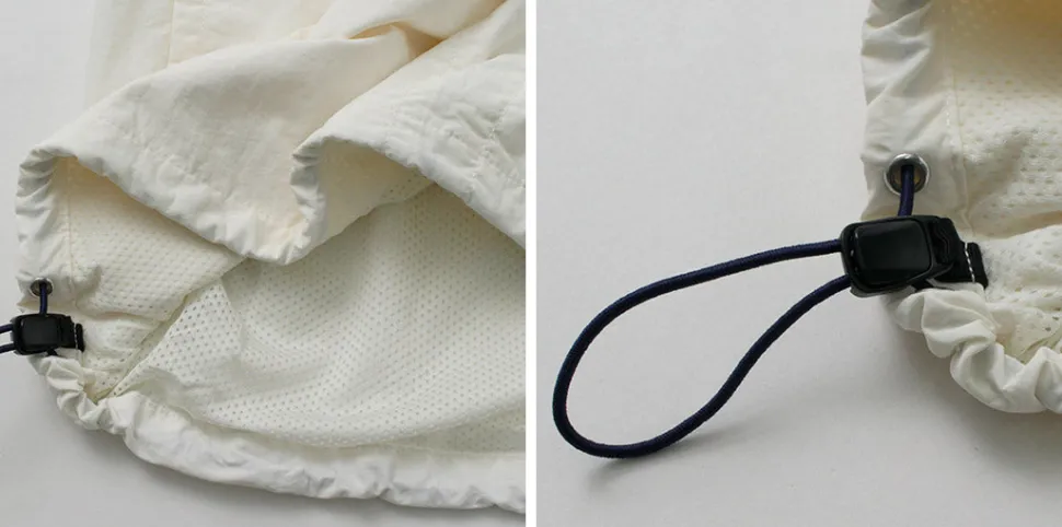 The outer fabric features a lightweight nylon cloth with a natural wrinkle texture, adding a retro feel. The full mesh lining ensures a comfortable, skin-friendly wear.