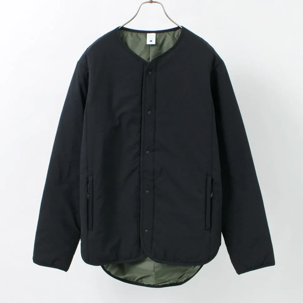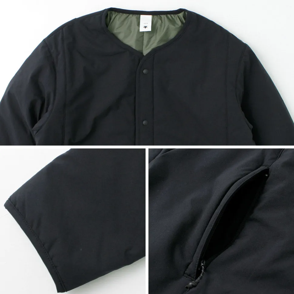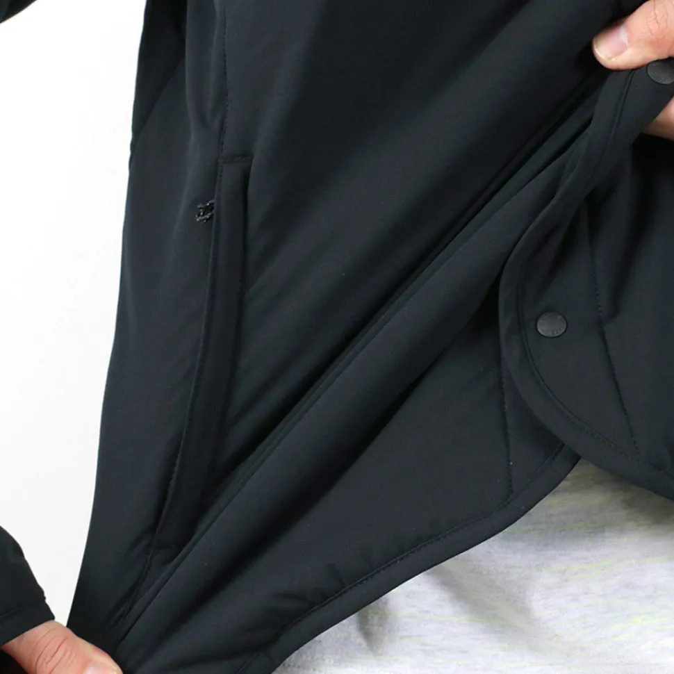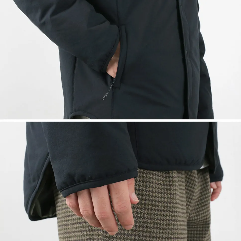 This jacket combines a stretchy shell material with padding to provide light weight, high mobility, and warmth retention. The lining is made of a heat-generating material that absorbs all wavelengths of sunlight and converts them into heat, providing an overwhelming heat retention effect of plus 5°C, enabling a higher grade of warmth retention. In addition, the design is minimalistic and easy to use on the street, despite being a sports brand. It can be used as a light outer layer in early spring and fall, and as an inner down layer in the cold season for a long season.