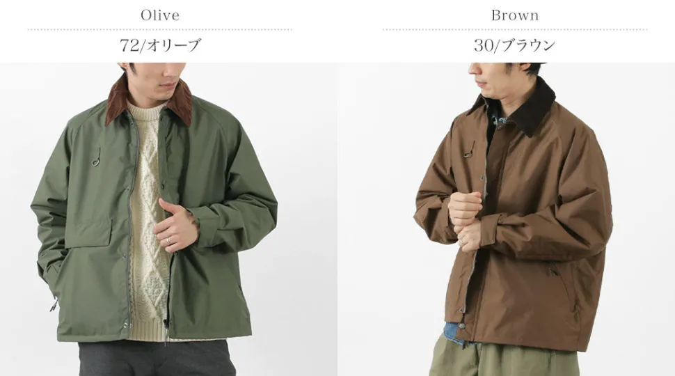 The collar is made of corduroy for added casualness. Pockets are divided into a main pocket and a handwarm pocket.