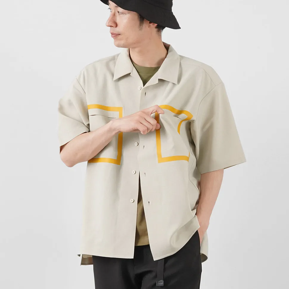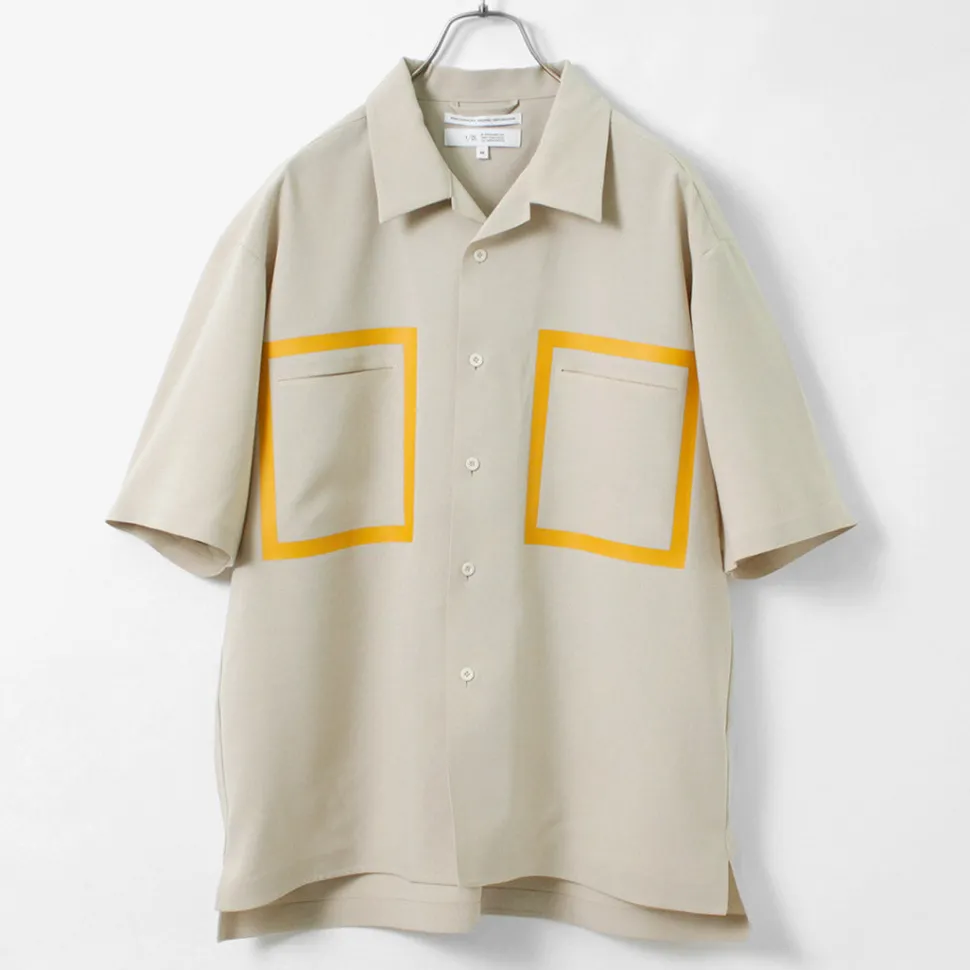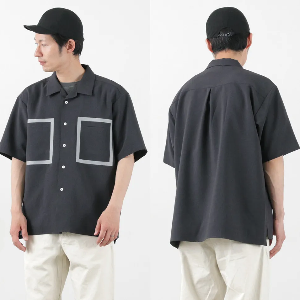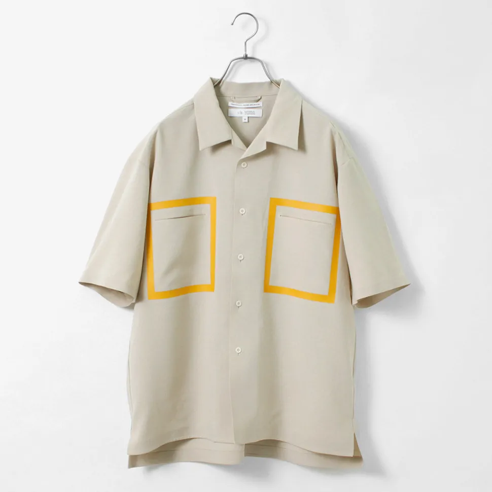 F/CE introduces an open collar shirt with a tropical wool look and front design.