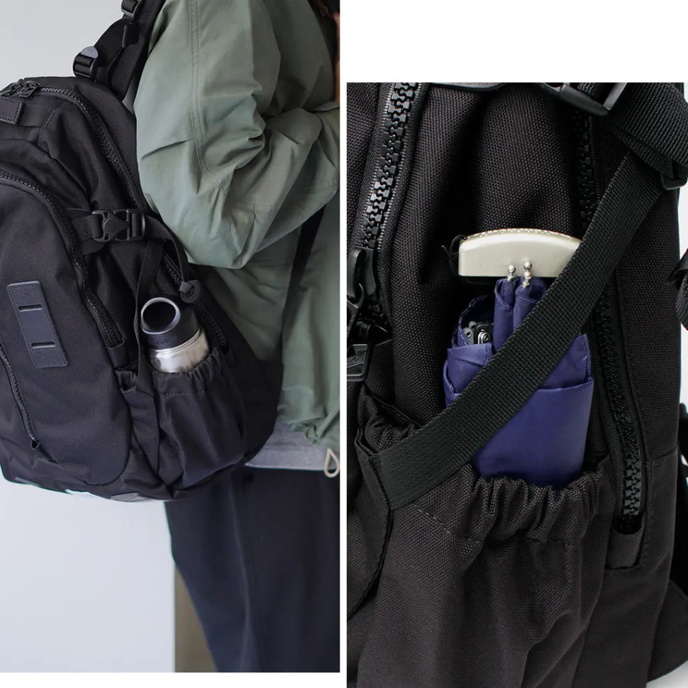 This daypack is made from lightweight, durable 915 denier polyester CORDURA fabric. It is designed for one-night, two-day trips and everyday use, and has excellent storage capacity.
