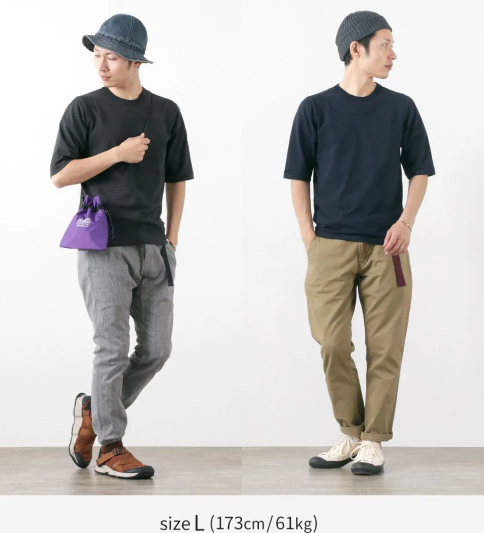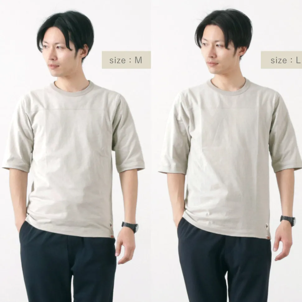 Slightly slim silhouette, but with slightly loose arms and 5/10 sleeves. It can be worn as an inner layer, or one size up and worn alone in a relaxed manner. It is different from a regular short-sleeved T-shirt and gives you a more casual look.