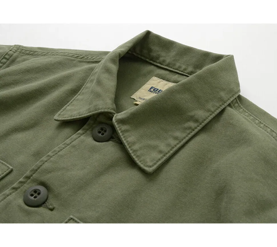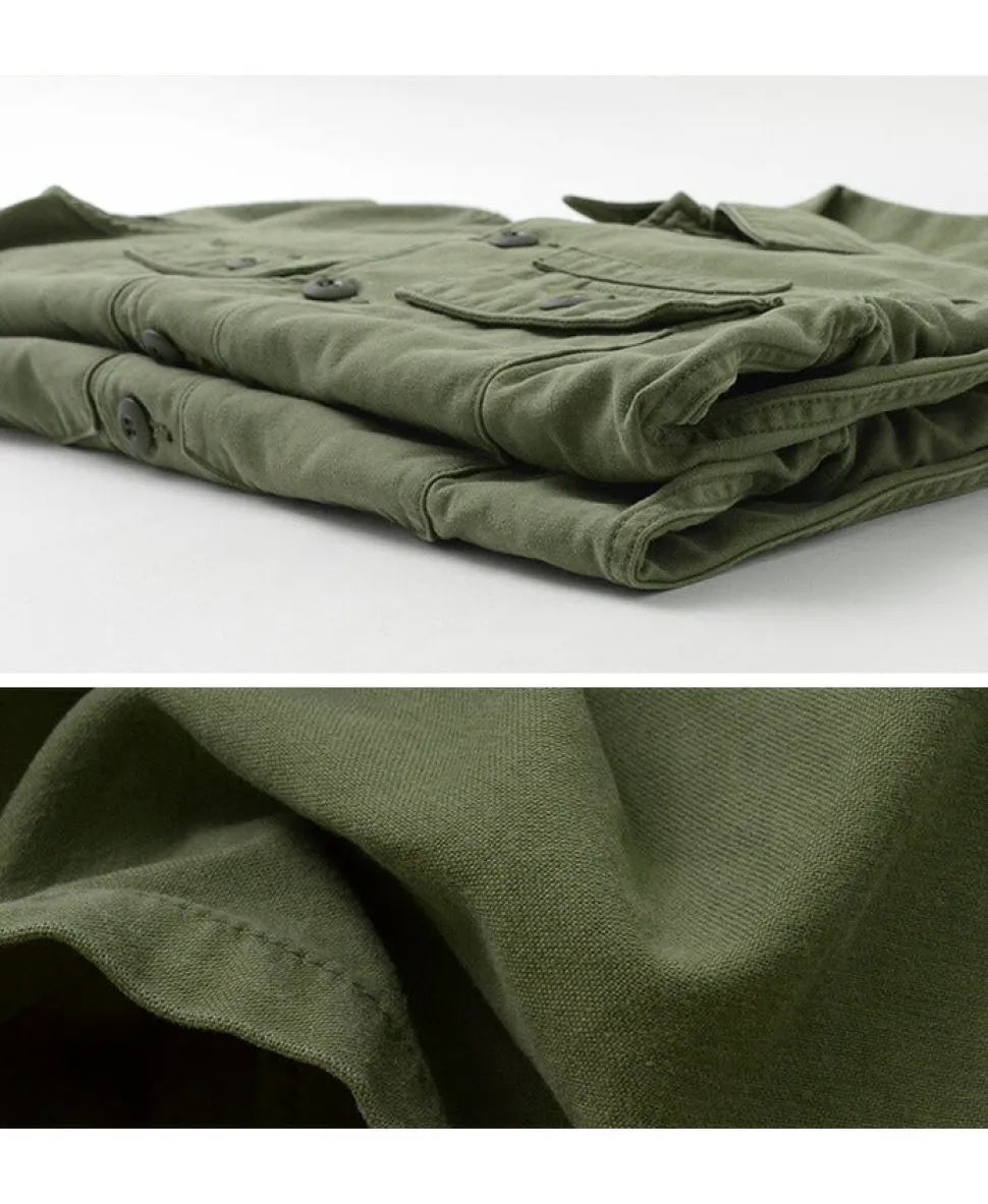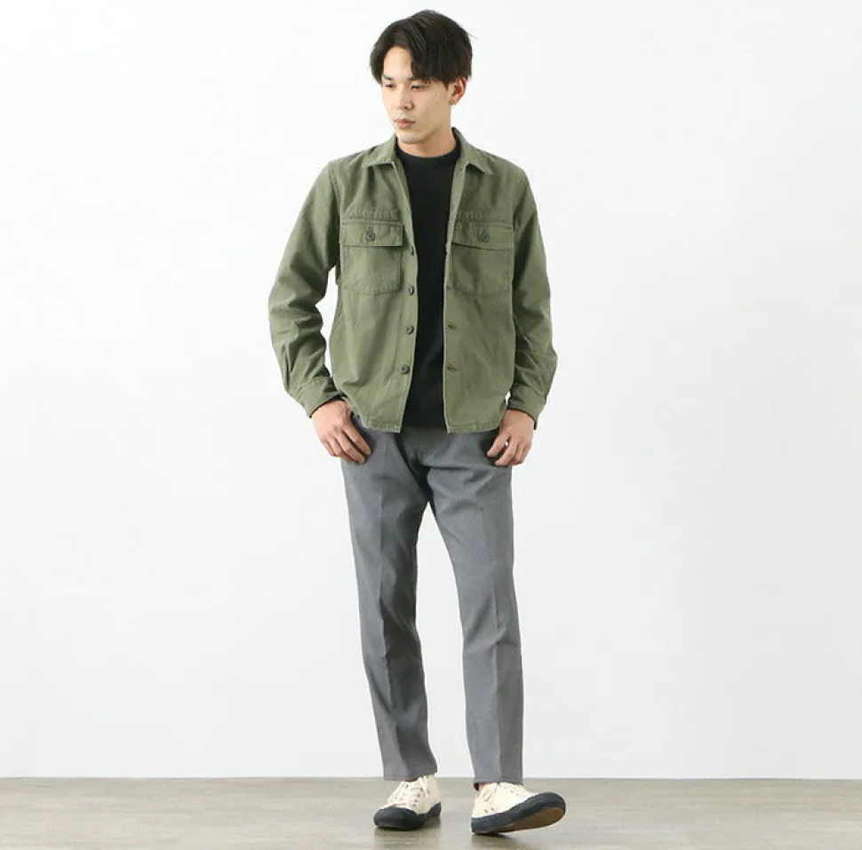 This jacket draws inspiration from the fatigue jackets worn by the US military during the Vietnam War. It exudes a plain yet sophisticated aura. Despite its simple design, it excels in strength and functionality. Simply wearing it adds a distinctive presence.