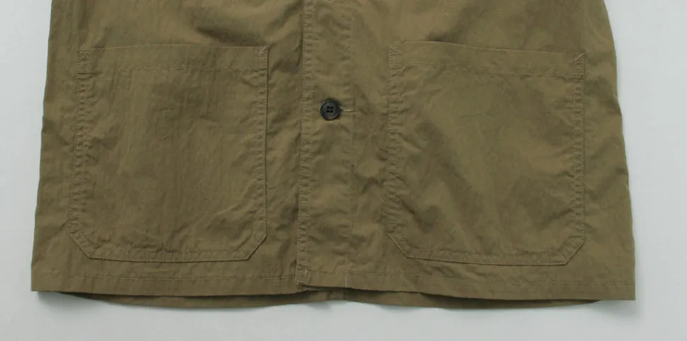The moderately roomy and elegant silhouette can be enjoyed as a shirt for town use, while the lightweight and strong fabric creates a hybrid atmosphere that evokes outdoor and military tastes.