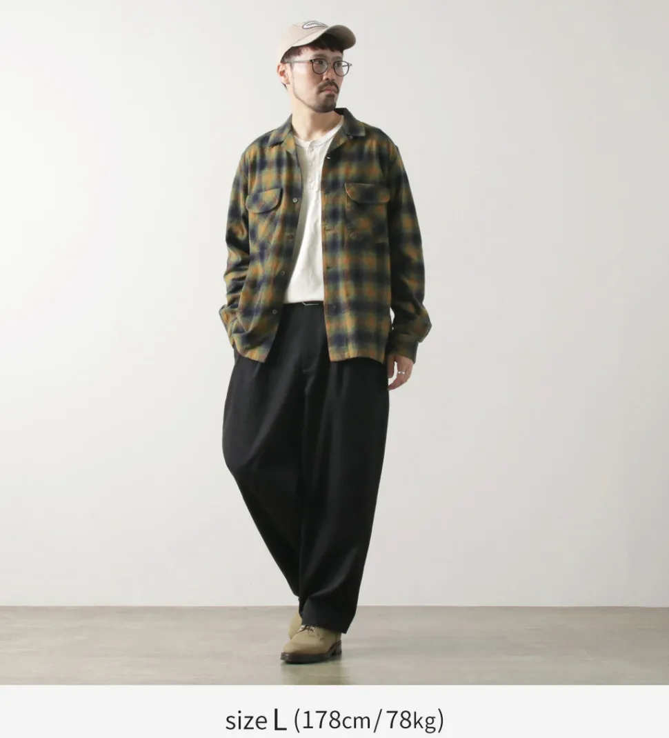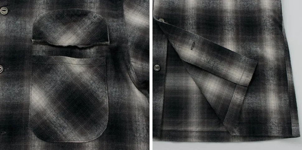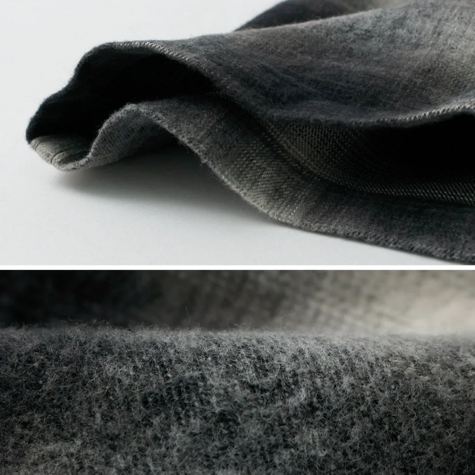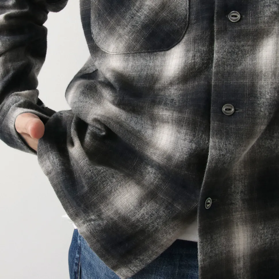This item features a retro and warm ombre check check using a stiff and thick flannel fabric with a brushed texture. It is a piece that adds an accent to your fall/winter coordination as a woven jacket in the chilly season or as an inner layer in the winter season.