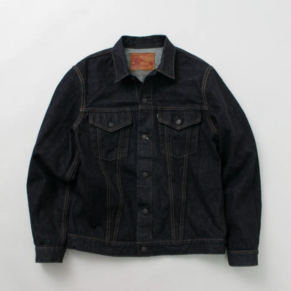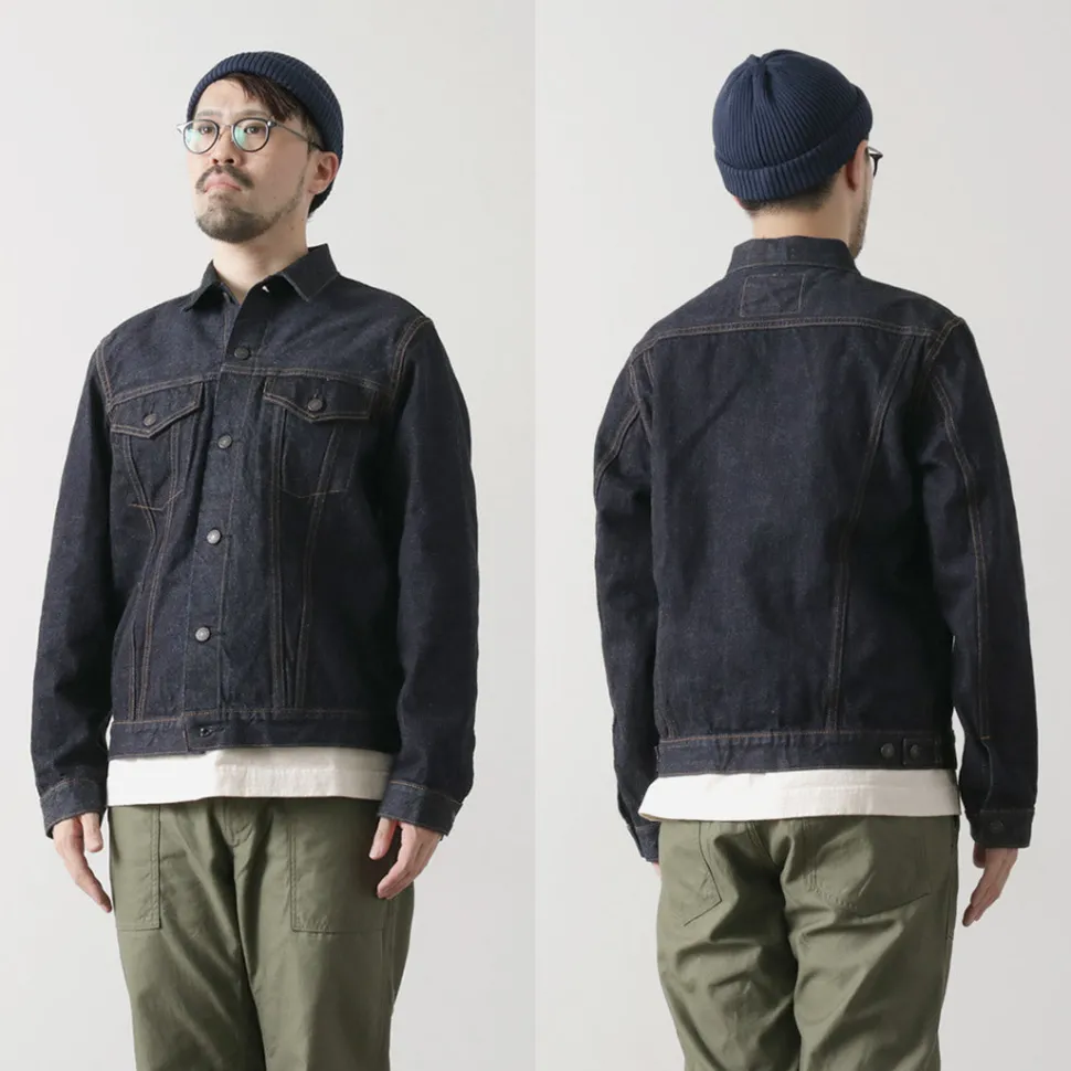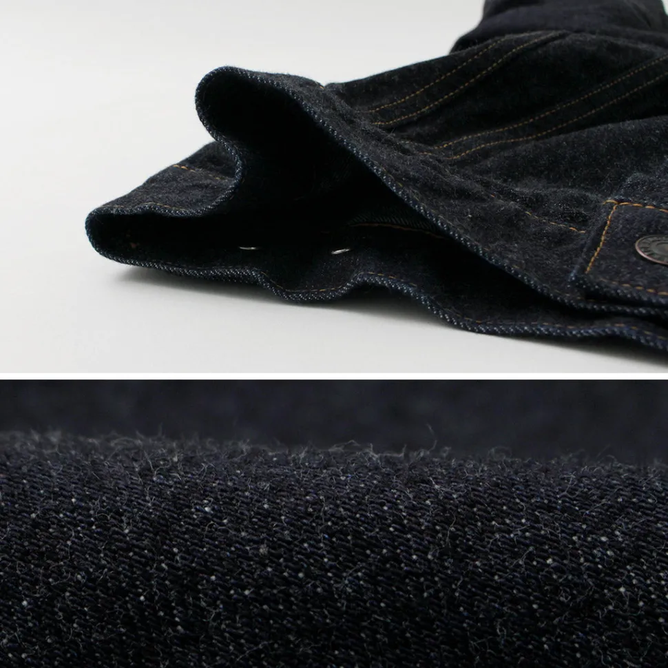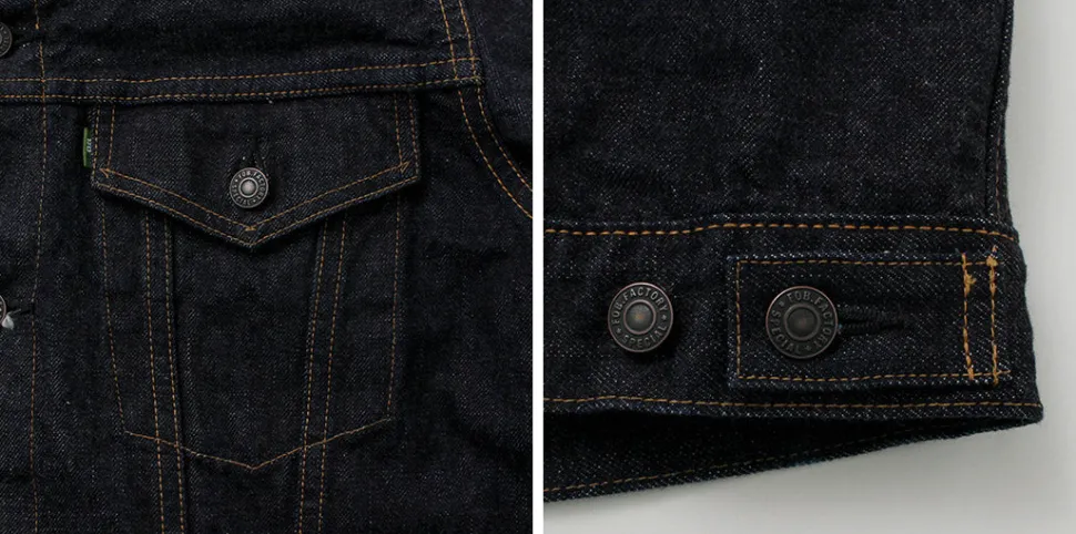FOB FACTORY introduces a jacket made of 14.75oz original selvage denim. The jacket is modeled after the “3rd JKT”, which evolved from workwear to a fashion item, and has been patterned to fit the modern fashion scene. The fabric is woven with a high density in a dark indigo blue color, and is made of high quality raw cotton that is both durable and supple for a comfortable fit.