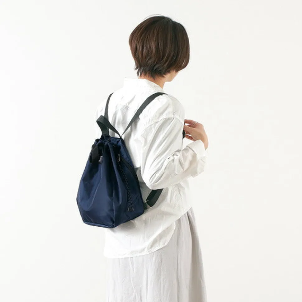 This 2-way backpack is made of 420-denier durable nylon fabric with a lovely pouch-shaped form, and can be handheld. It can be used for a wide range of purposes, including leisure scenes such as camping, as well as town use. The cute form is contradictory to the tough details, so you can spend your days being active. Light and strong “pack cloth nylon” The fabric is made of lightweight and strong “420 denier pack cloth nylon”. You will be amazed at how light it is when you hold it. The fabric is also used for outdoor products because of its excellent tear and abrasion resistance. The moderate luster of the fabric is GOODThe moderate luster and smooth feel of the fabric gives it a casual atmosphere with a hint of “class. The excellent water repellency makes it easy to clean and easy to handle.