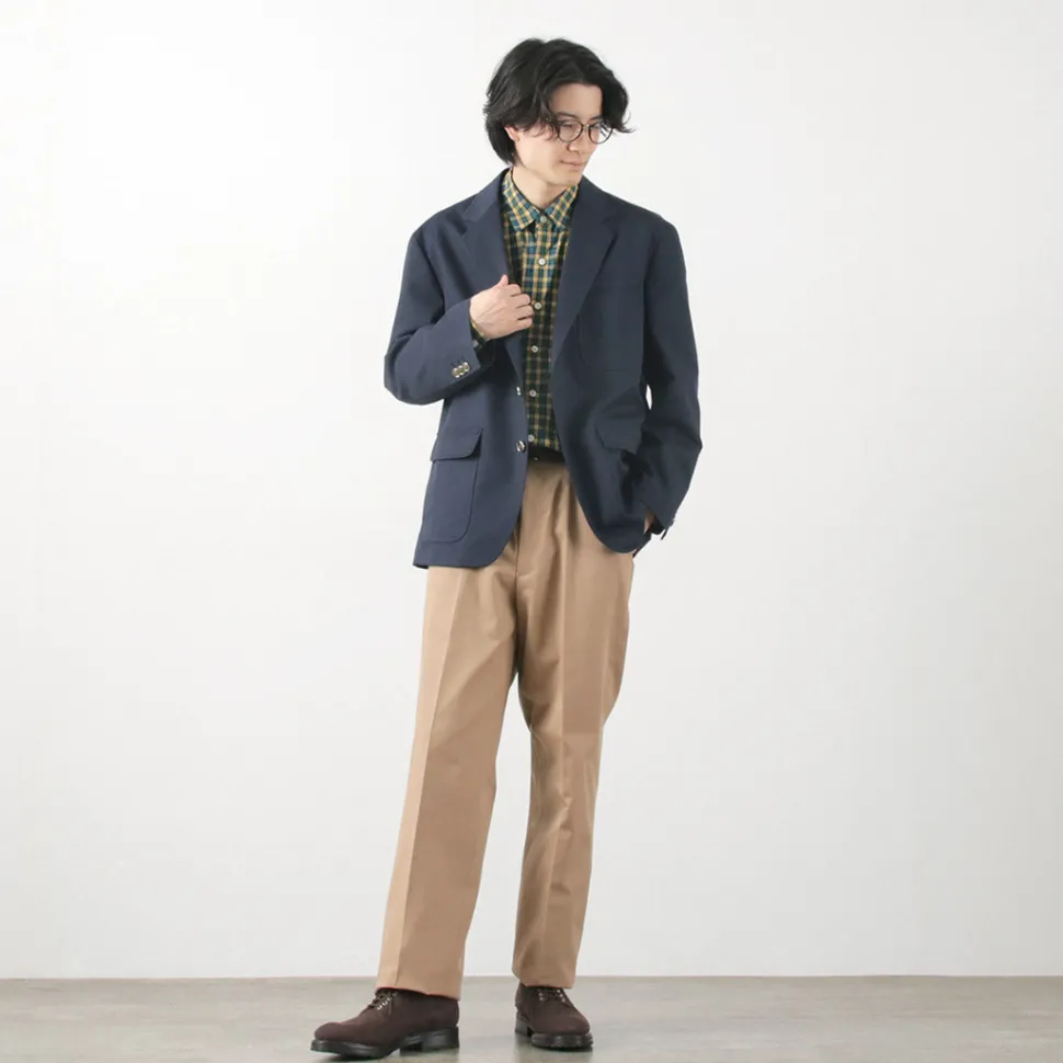 Crafted from a high-density cloth with a crisp texture and adorned with classical details, this jacket offers a refined finish. Moreover, by reducing the thickness of the fabric and using a backless lining, it provides a comfortable and lightweight wearing experience.