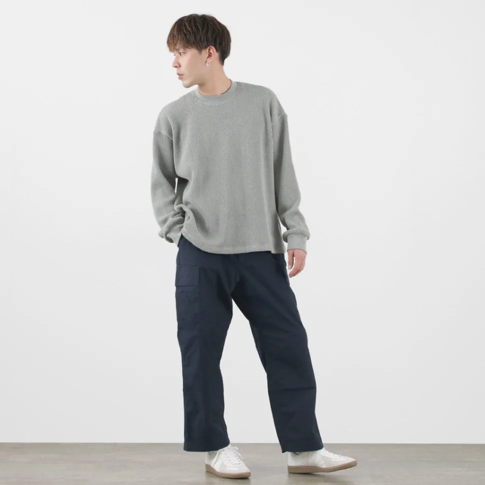 Wide silhouette with room around the hips and thighs. It goes well with casual wear as well as with a clean look with a shirt, allowing you to enjoy a wide range of coordinates.