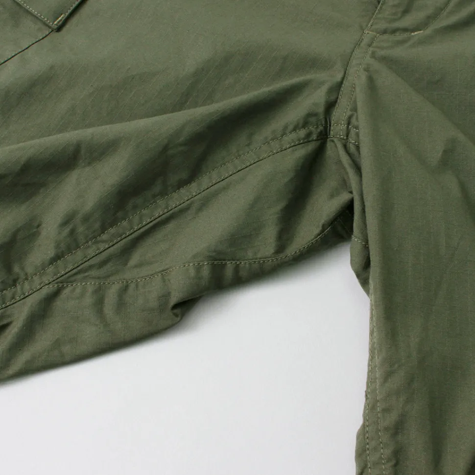 This item is made of 100% cotton “ripstop” fabric, which prevents further progression even if the fabric should tear. Although thin and lightweight, it offers excellent durability, and you can enjoy the unique aging effects of cotton ripstop as it is used over the years.