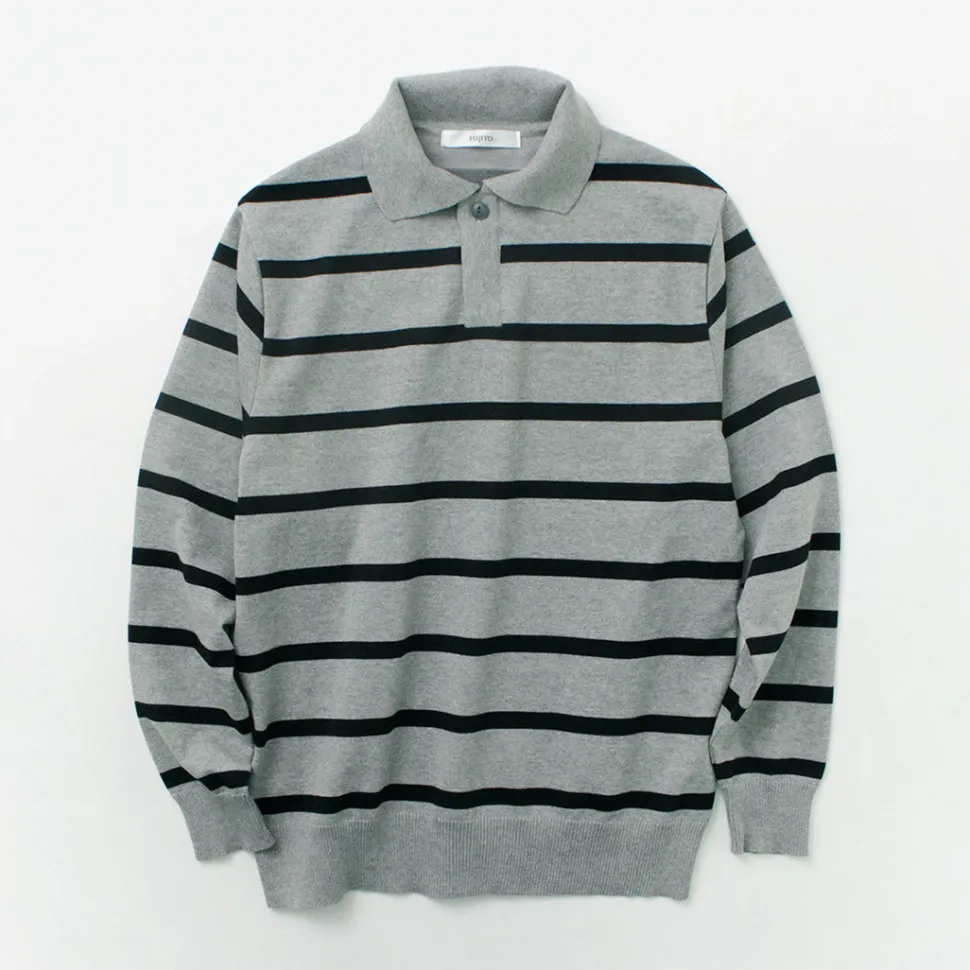 FUJITO introduces a lager shirt with an eye-catching thick stripe pattern. This is a piece with FUJITO’s unique specifications, a knit sweater made from a lager shirt like the one worn by the famous painter David Hockney. It features a comfortable fabric and a moderately loose silhouette.