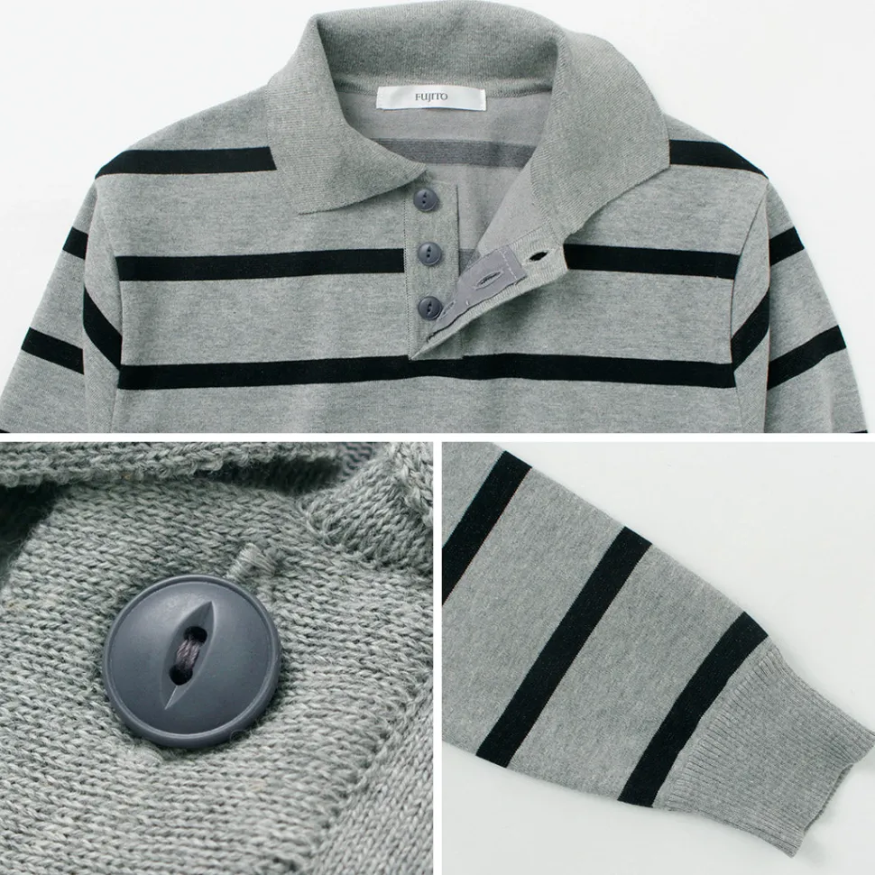 FUJITO introduces a lager shirt with an eye-catching thick stripe pattern. This is a piece with FUJITO’s unique specifications, a knit sweater made from a lager shirt like the one worn by the famous painter David Hockney. Enjoy this item with an outstanding sense of presence, which can be used as an inner layer as well as a single piece.