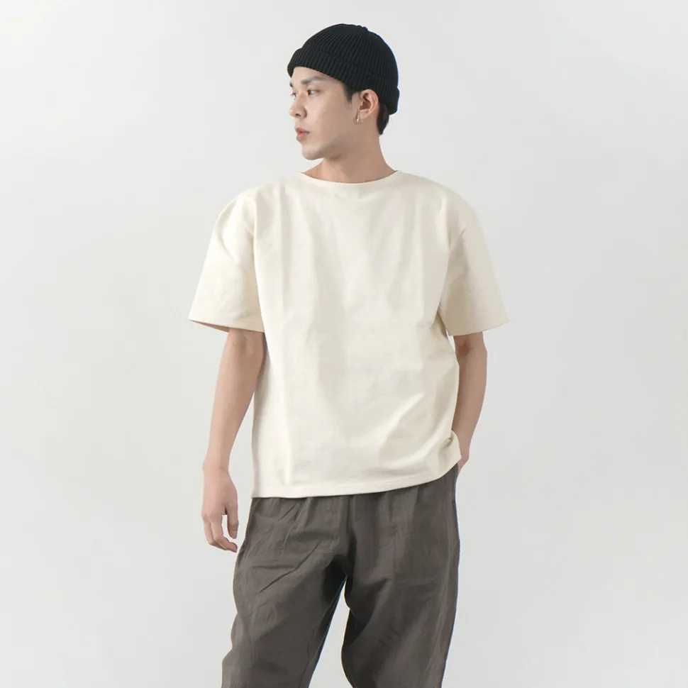 The boat neck, typical of French cut-and-sew shirts, has been taken over and made into a short-sleeved version that can be easily picked up even in the hot and humid season.
