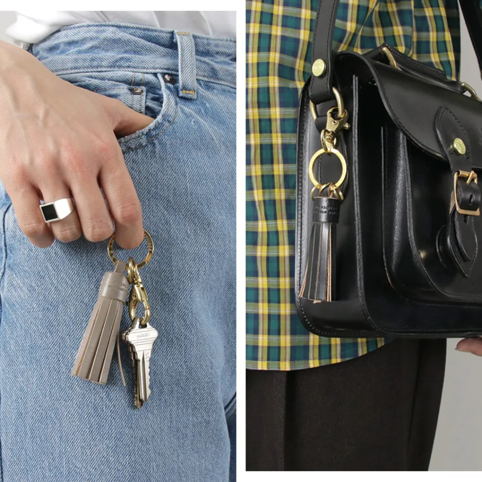 A luxurious leather tassel finished in a size that fits comfortably in your hand. With a design suitable for both men and women, it seamlessly complements bags, wallets, and other items.