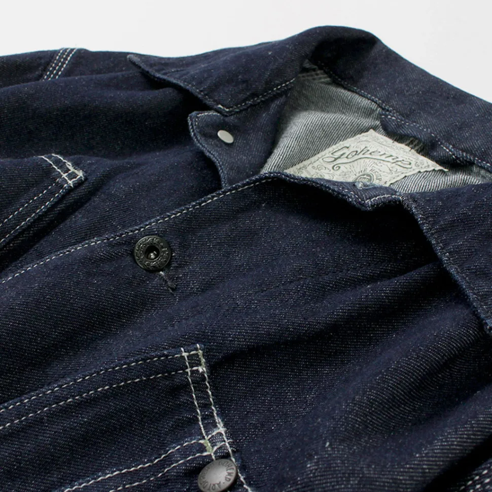 This coverall jacket is made of GOHEMP’s classic hemp cotton denim, and is finished with a trendy tailored pattern and a loose, roomy silhouette while maintaining the vintage details and traditional sewing that are GOHEMP’s strong points.