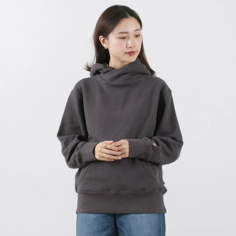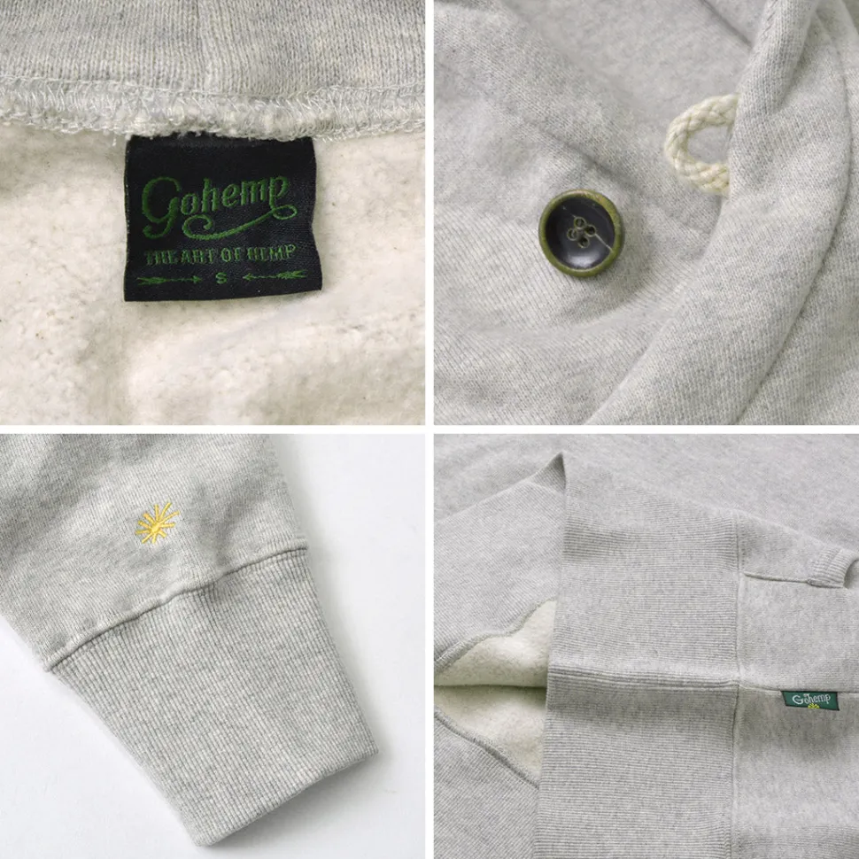 This hoodie features a hood that looks like a shawl wrapped around it. The buttons around the neck can be used to change the silhouette. The fabric is made of GOHEMP’s standard hemp and cotton. The fabric is soft yet sturdy and durable. The reverse side is brushed, so it is a piece that can be worn warmly and comfortably even in the middle of winter.