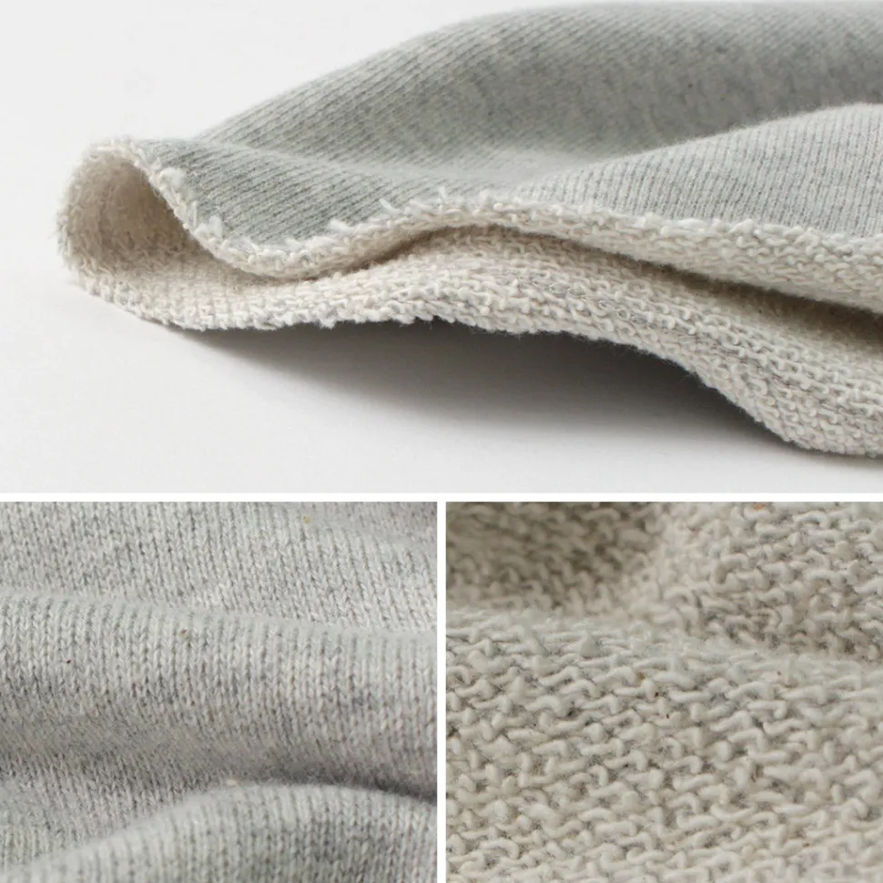 Made from a blend of 55% hemp and 45% cotton. With the excellent moisture absorption and quick-drying properties of hemp, combined with the dry feel of looped back fleece, it reduces stuffiness and allows comfortable wear even in sweaty seasons.