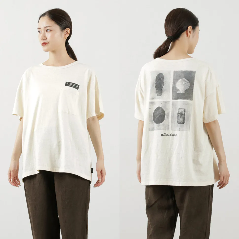 The back of this T-shirt features a print of Bruce Osborn’s photographs of drifted objects washed up on the beach. The warmth of the print, which is overflowing with a love for nature, will catch your eye.
