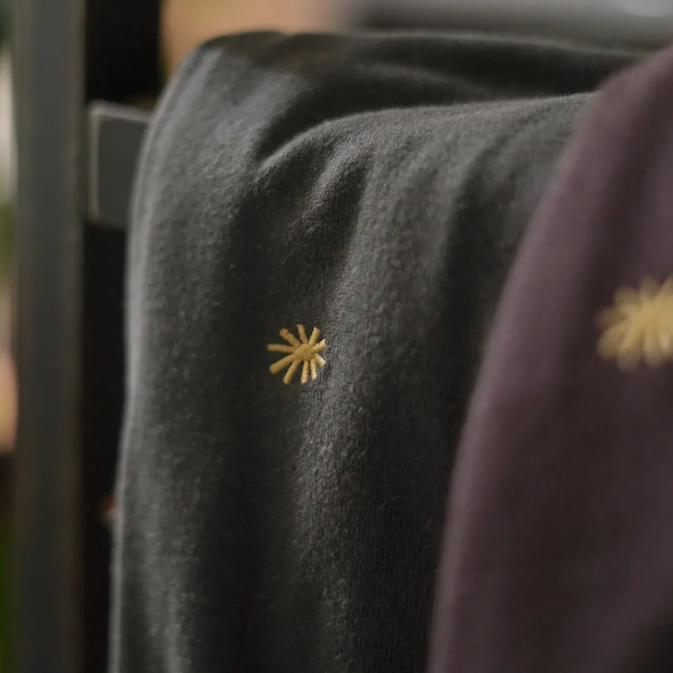 Using the original jersey fabric made with the golden ratio of 55% hemp and 45% organic cotton, this material has a thickness between a sweatshirt and a T-shirt, making it versatile for year-round wear.
