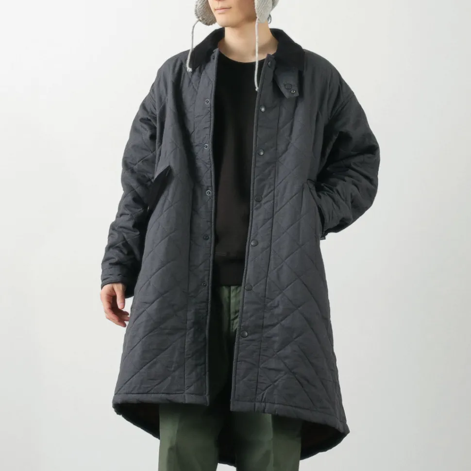A long-length jacket modeled after the M65 parka. It features a unique combination of vintage-style hemp cotton fabric and corduroy details on various parts.