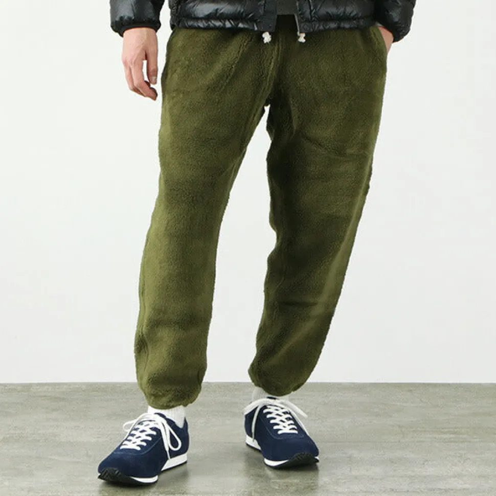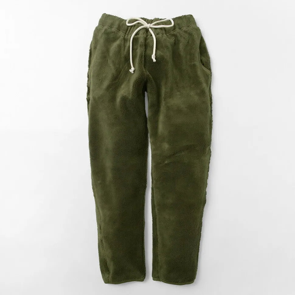 Good On presents a warm, light and soft boa pant with a shaggy finish, made of USA cotton woven by Japanese craftsmen to the maximum thickness, featuring a natural luster and luxurious color shading.