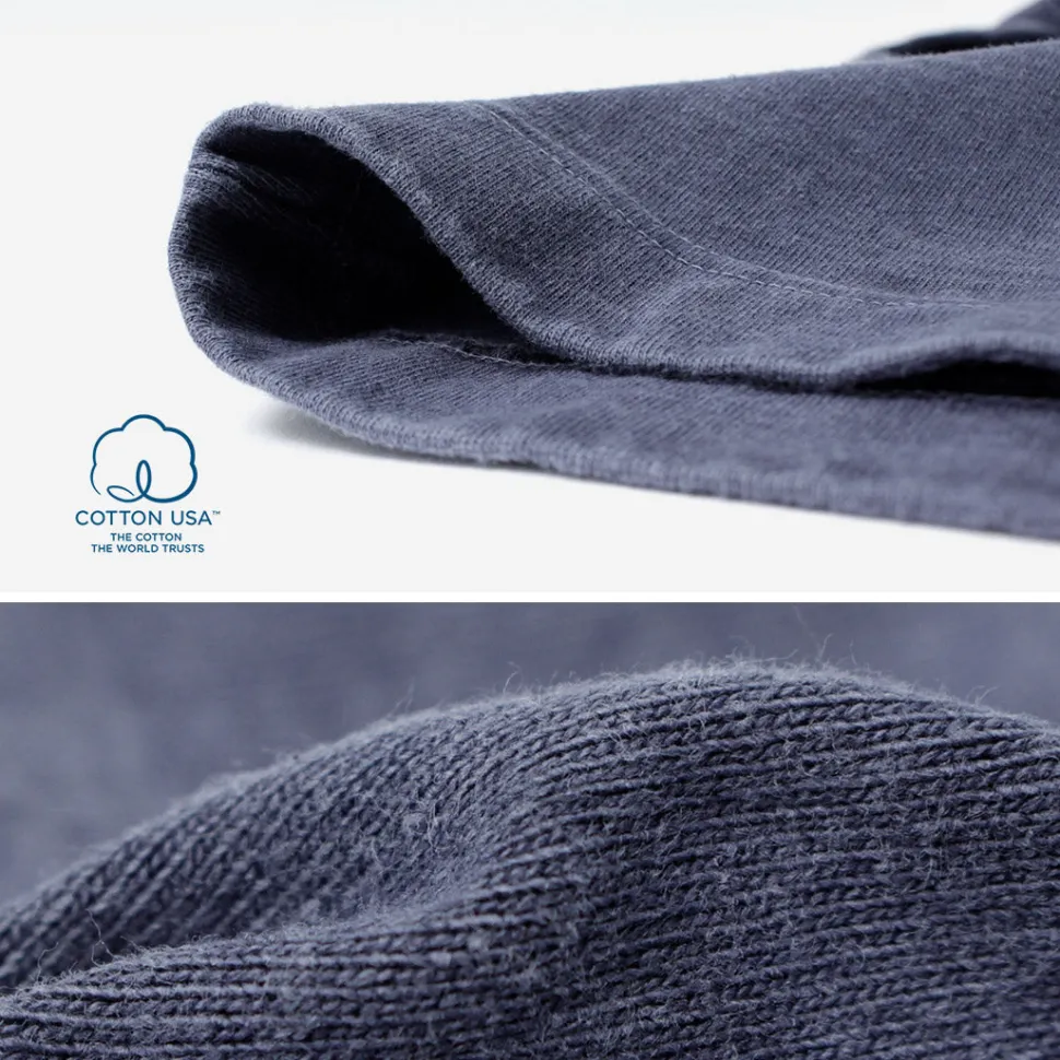 The 9-ounce T-shirt fabric allows you to fully enjoy the comfortable feel of high-quality American cotton. It starts off with a substantial feel but gradually softens with each wear, acquiring a luxurious texture over time.