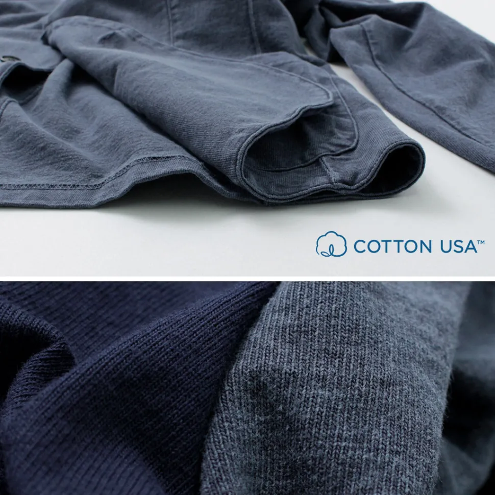 This thick jersey fabric is densely knitted with thick threads, and while it gives a casual impression, it also has a robust, high-quality, and luxurious look and feel, giving you the full experience of wearing high-quality American cotton.