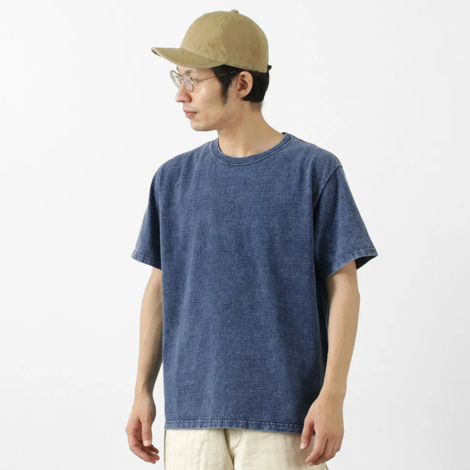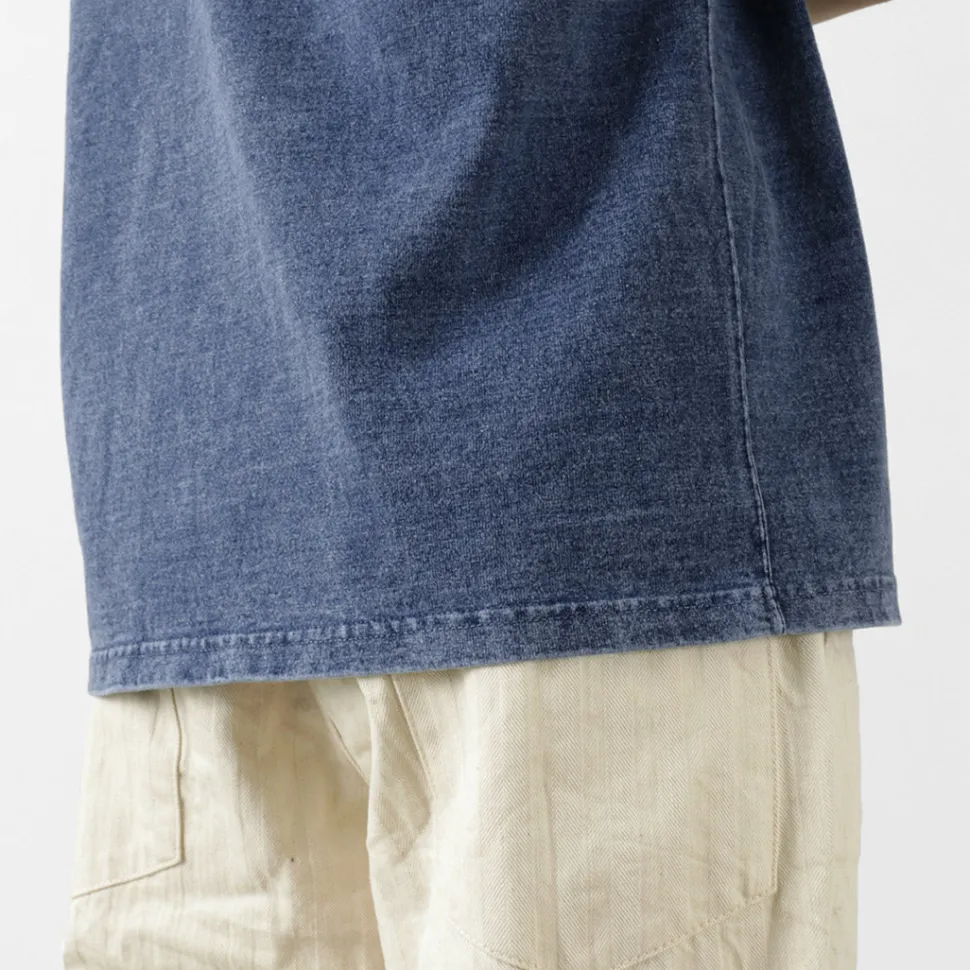 The Set-In Sleeve Crew Neck T, made from rugged, heavy 9 oz jersey with a rugged and heavy feel, is dyed in indigo.