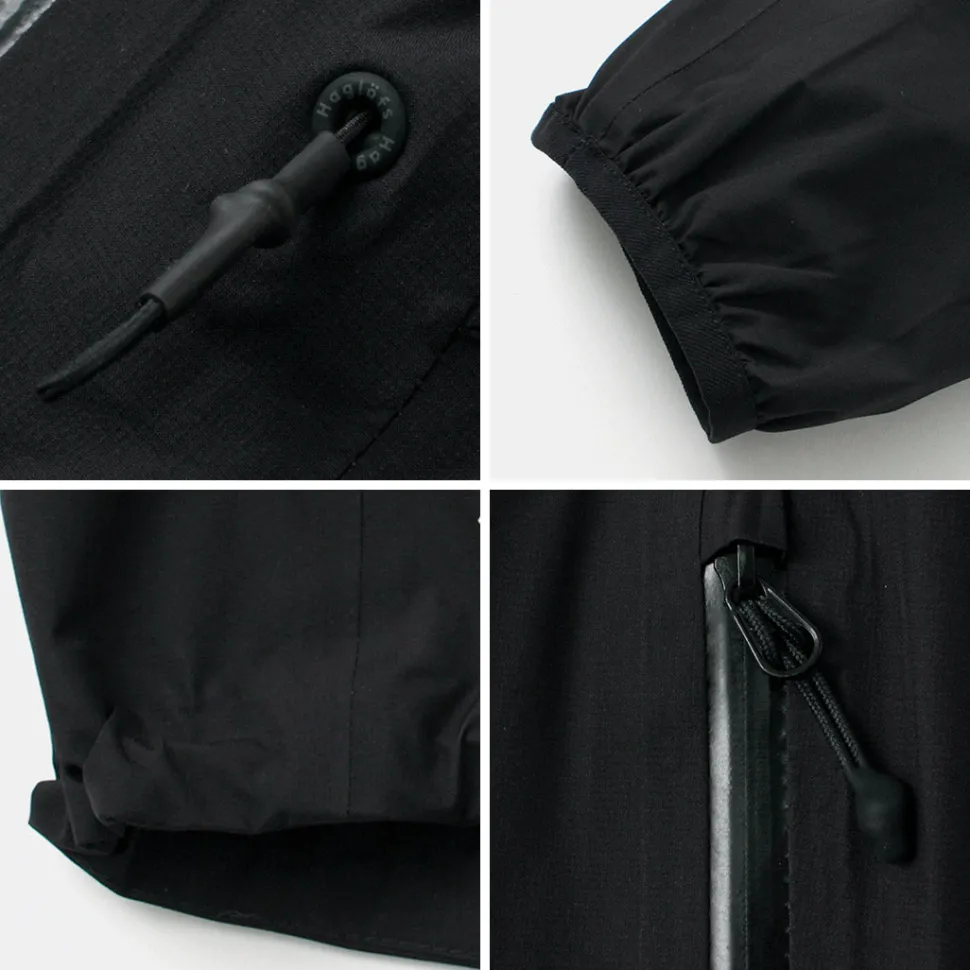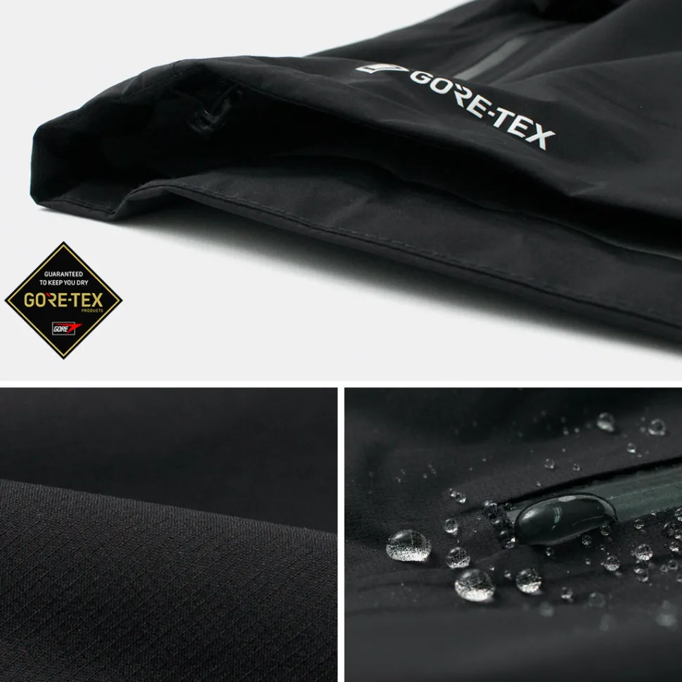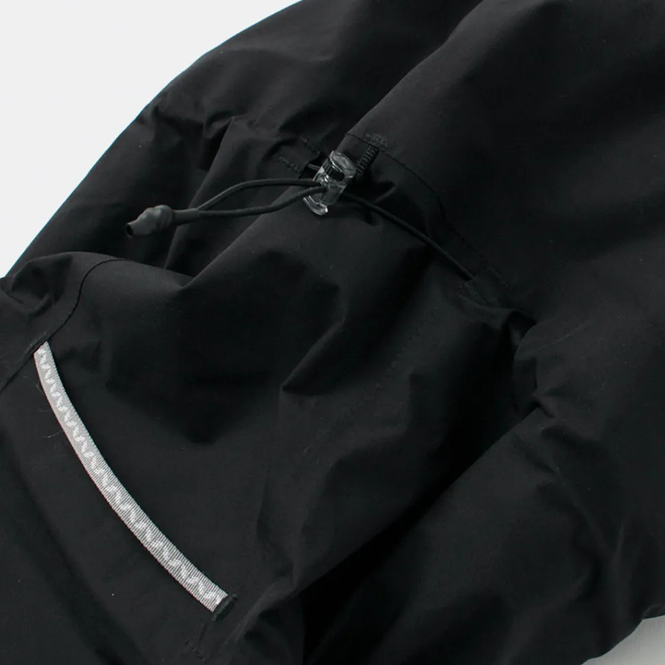 Shell jacket made of high-performance GORE-TEXPACLITEPLUS material. Provides durability, water resistance, and breathability while being lightweight.