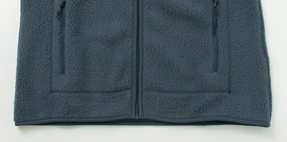 The warm and fuzzy fleece fabric has a retro feel with a slightly dull color. The sleek silhouette makes it easy to wear on its own or with outerwear.