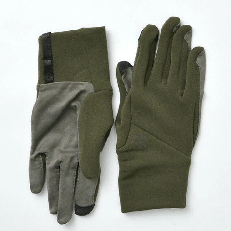 The main material is Polartec POWER STRETCH, a fleece material with excellent heat retention. The palm of the hand is made of ultra-fine fiber Nano Front, a model that can be used in a wide range of situations from the city to the field. The newly developed special pattern provides warmth and an excellent fit. The design blends in with the city and gently wraps your hands as you move about. POLARTEC POWER STRETCH with outstanding fit and moisture retention, palm with nano-front for excellent grip and fit like a bare hand, fingertips are touch screen compatible.