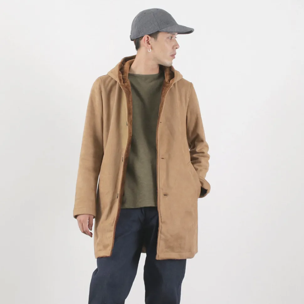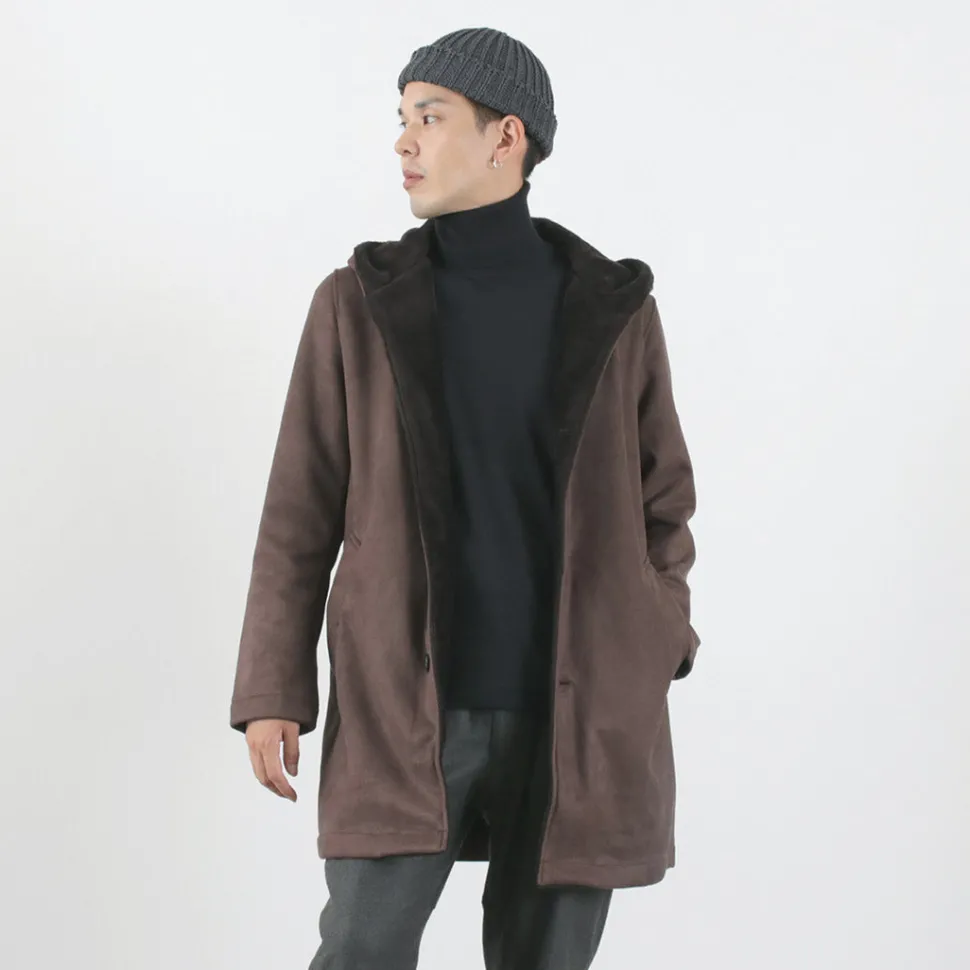 A clean silhouette with an above-the-knee length and knit mouton material that is characterized by its superb texture.
