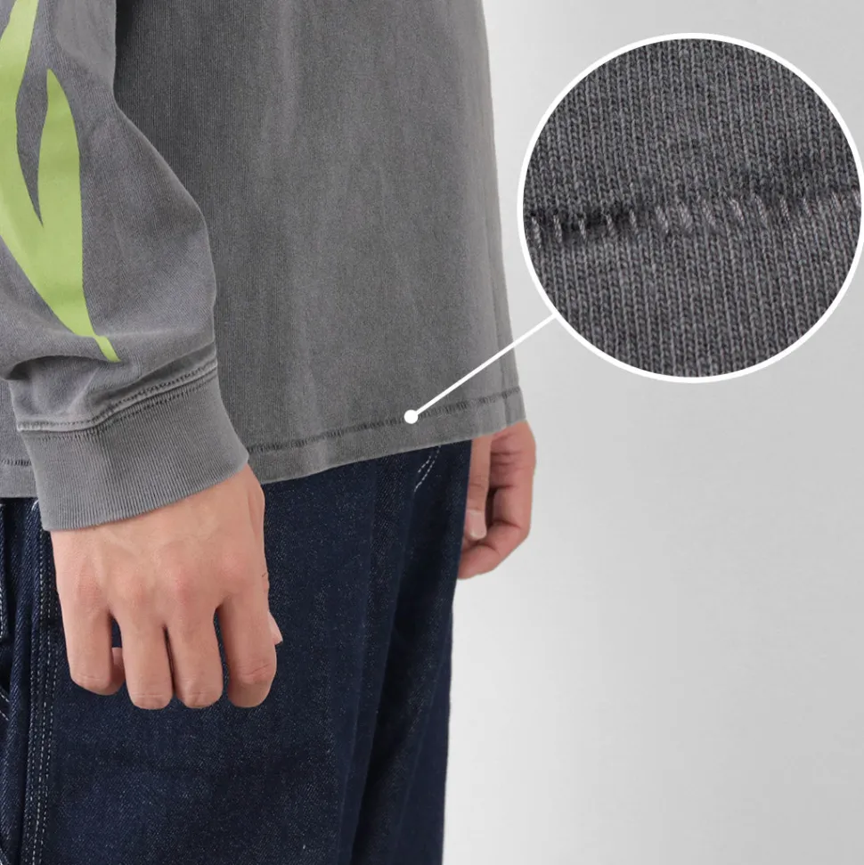 The hem is single-stitched, which is familiar to vintage T-shirts. When seen from the front side, you can see the stitching on the hem.