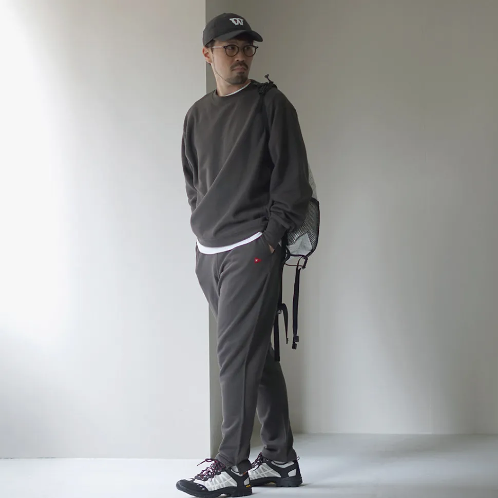 The gusset rib at the crotch ensures ease of movement, and the slit at the hem creates a sleek look at the ankles, adding an element of sophistication to the casual design.