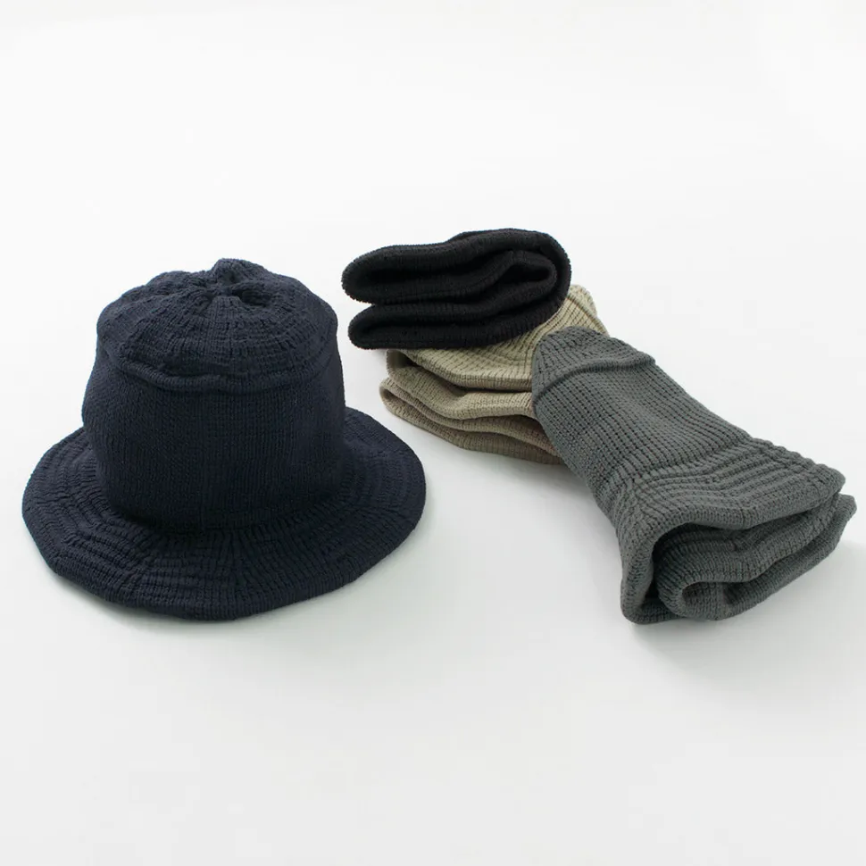 HICOSAKA introduces a bucket hat with a functional beauty that can be incorporated into everyday use. This item is knitted three-dimensionally using the seamless one-piece knitting method. The hat is made to take full advantage of the characteristics of polyester material, and while maintaining its beautiful shape, it has the elasticity characteristic of knitwear, making it comfortable to wear.