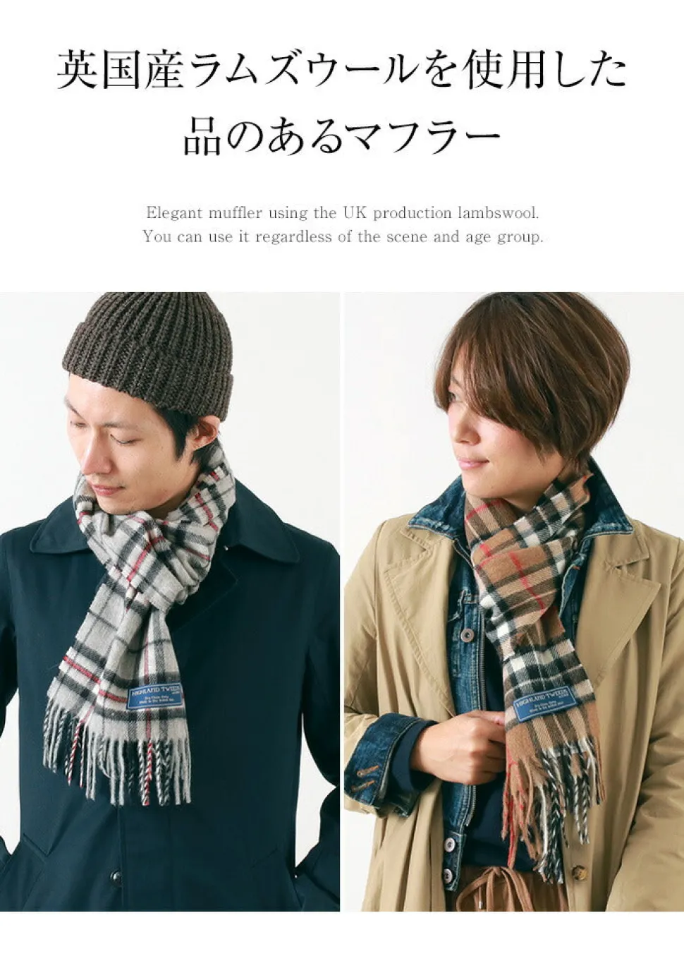 This checkered scarf is made of British lambswool, which has a gentle touch and high heat retention properties. The standard size is a little shorter. The size has been resized for ease of use (176cm x 25cm). The easy to use size is a big point for both men and women. Lamb wool is a soft wool that can only be obtained from lambs that are less than six months old among merino wools. The fibers are thinner than normal wool, making it soft and fluffy. It is really soft, and the quality is such that even people with sensitive skin can use it without worry.