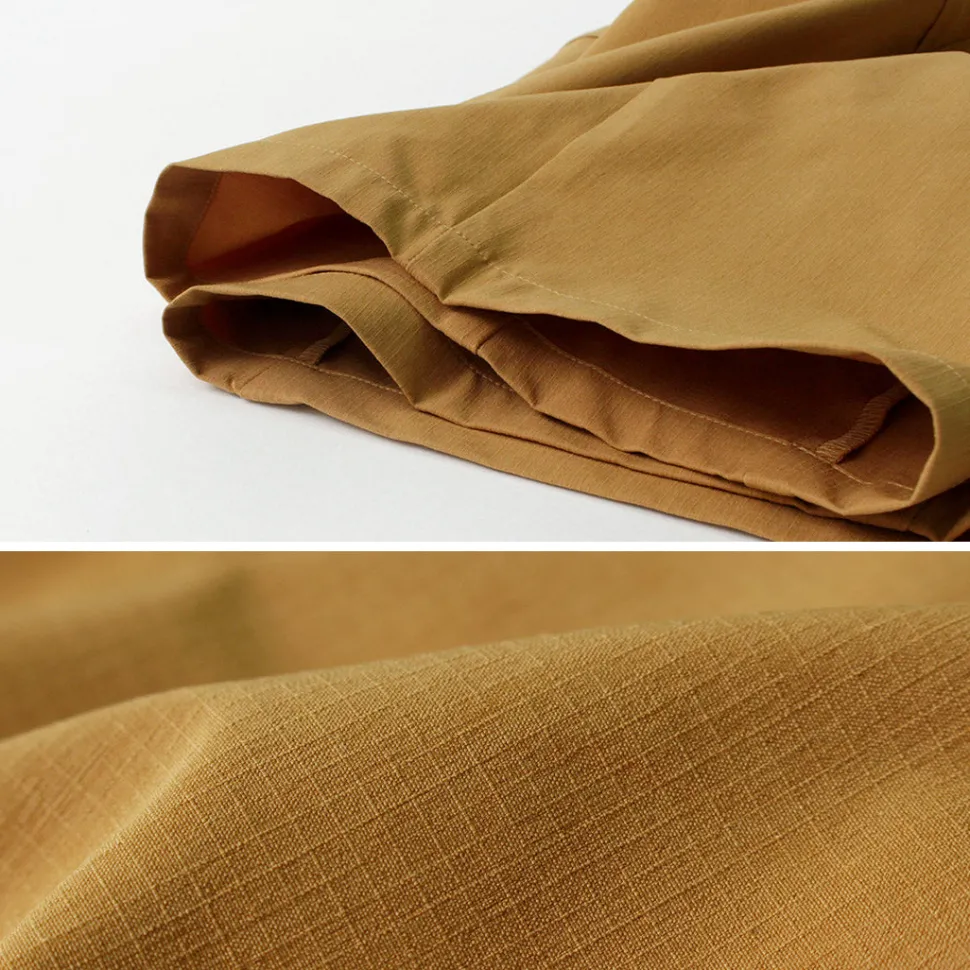 The shorts feature a high-density polyester Ripstop fabric known for its durability and stretchiness. It’s thin and lightweight, making it ideal for active use while being tear-resistant and long-lasting.