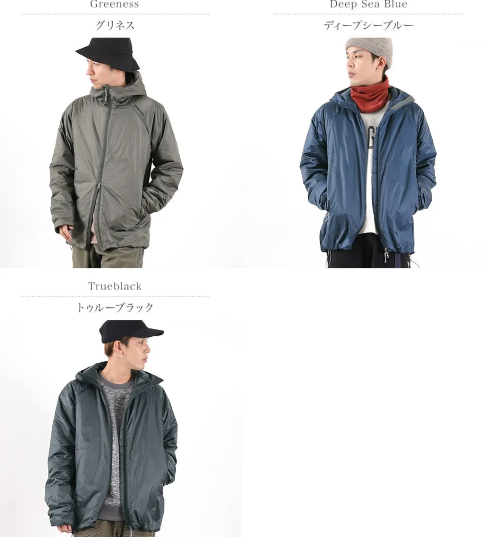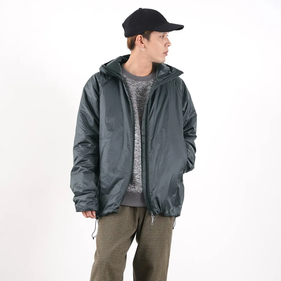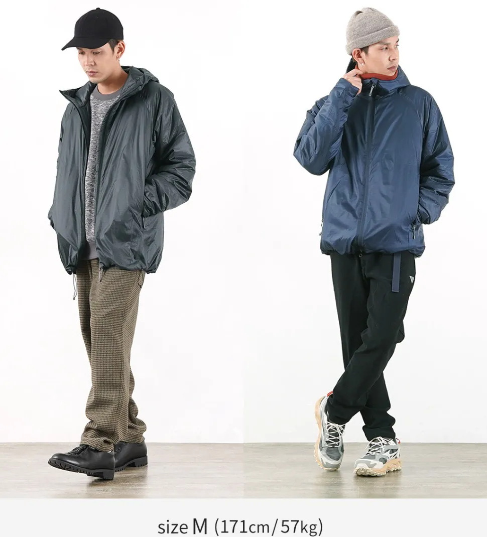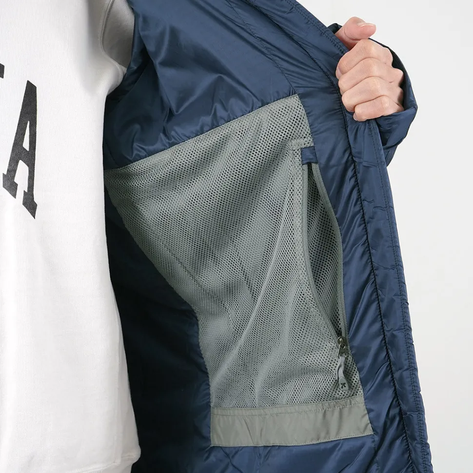 The “Spinner Ripstop” is made entirely of polyester, from the outer fabric to the padding. PRIMALOFT Gold Insulation is used as the insulating material, providing high heat retention and insulation at a light weight. In addition, its water repellency keeps heat from escaping even when damp and prevents moisture from entering the inner layer.