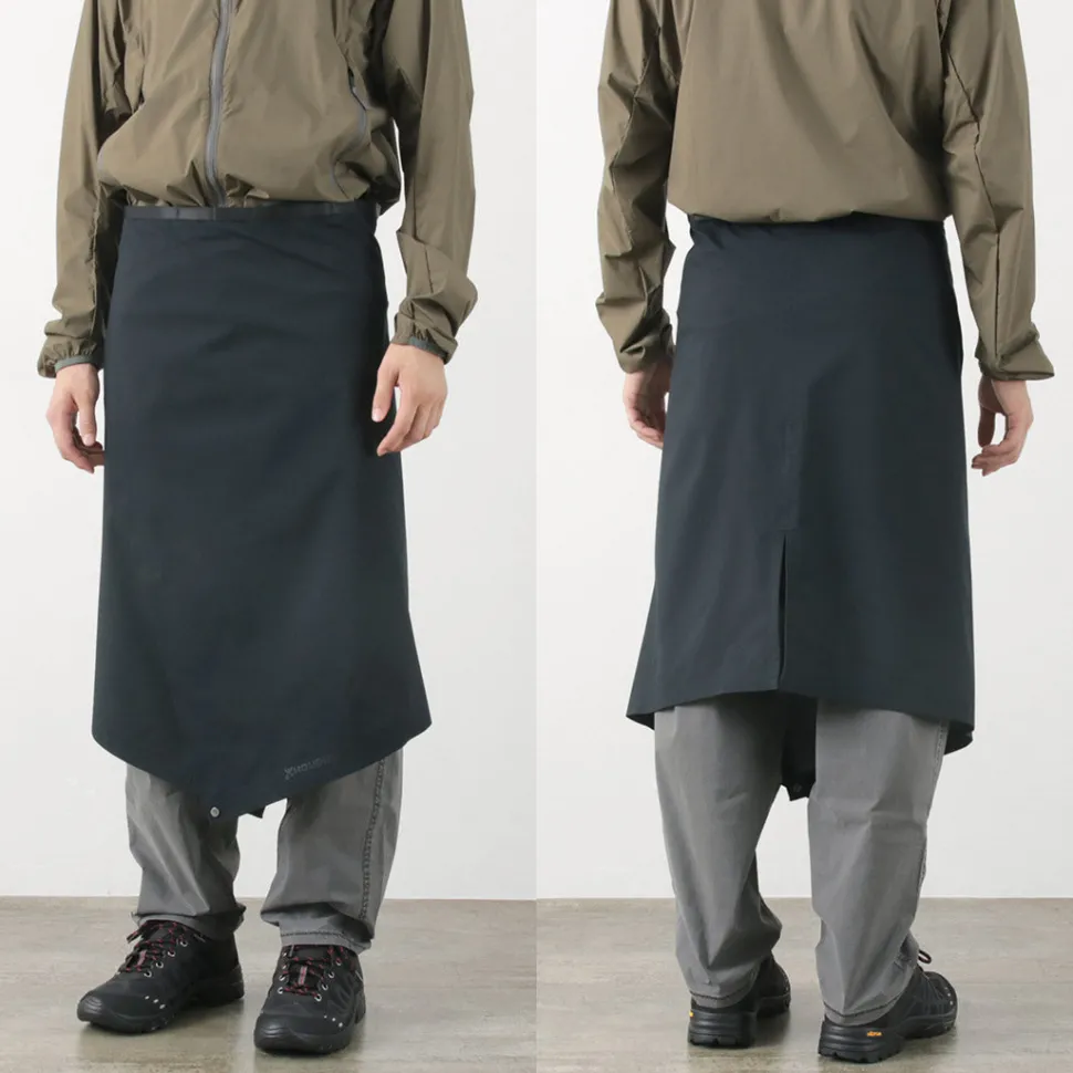 HOUDINI introduces the Waterproof Shell Skirt, a minimalist design concept that replaces rain pants. Although a lightweight item weighing approximately 250g, it is a waterproof and windproof 3-layer Loop Hardshell with 2-way stretch elasticity and high breathability.